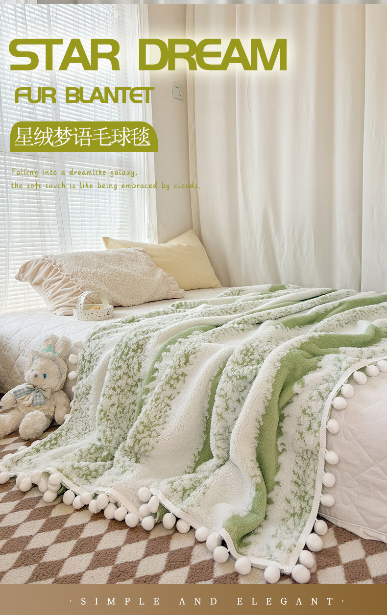 潮邦创意家居 【标准250G】阳离子双色提花星绒梦语小球毯可供跨境电商可压缩 星绒梦语雅绿