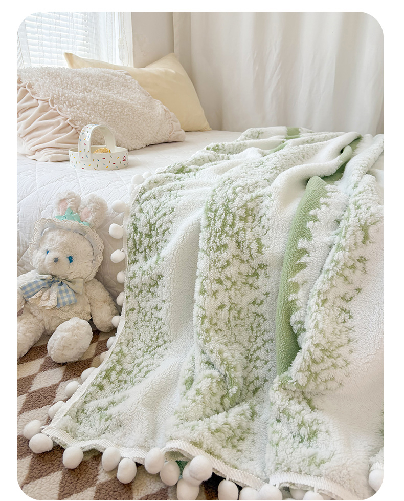 商品名称:潮邦创意家居 【标准250G】阳离子双色提花星绒梦语小球毯可供跨境电商可压缩 星绒梦语雅绿