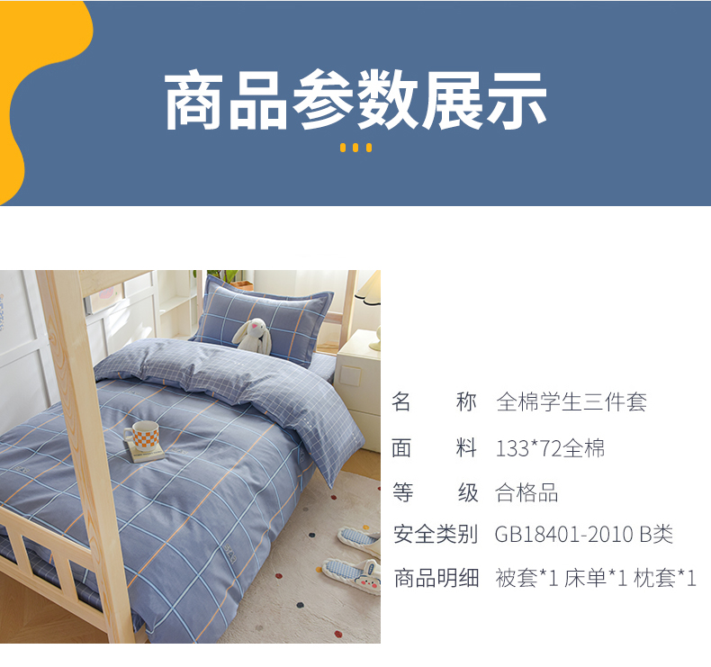 商品名称:鑫宇2025新款13372全棉学生宿舍上下铺三件套床单款床笠款可定制 新都时尚-灰