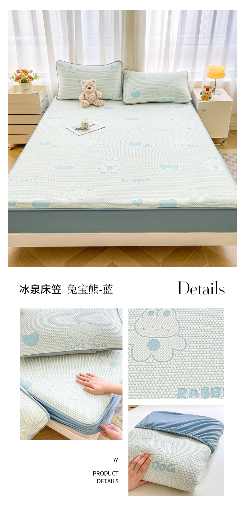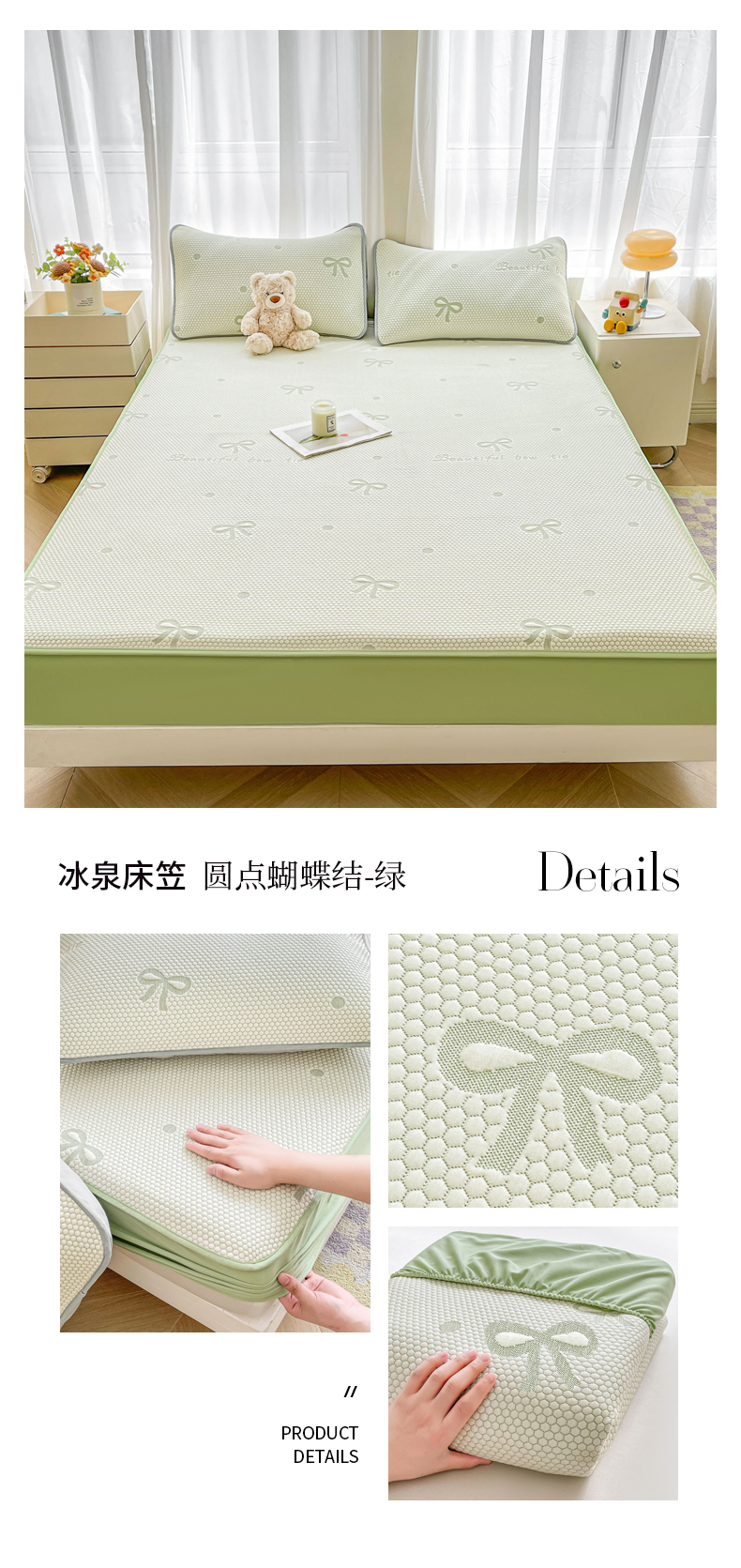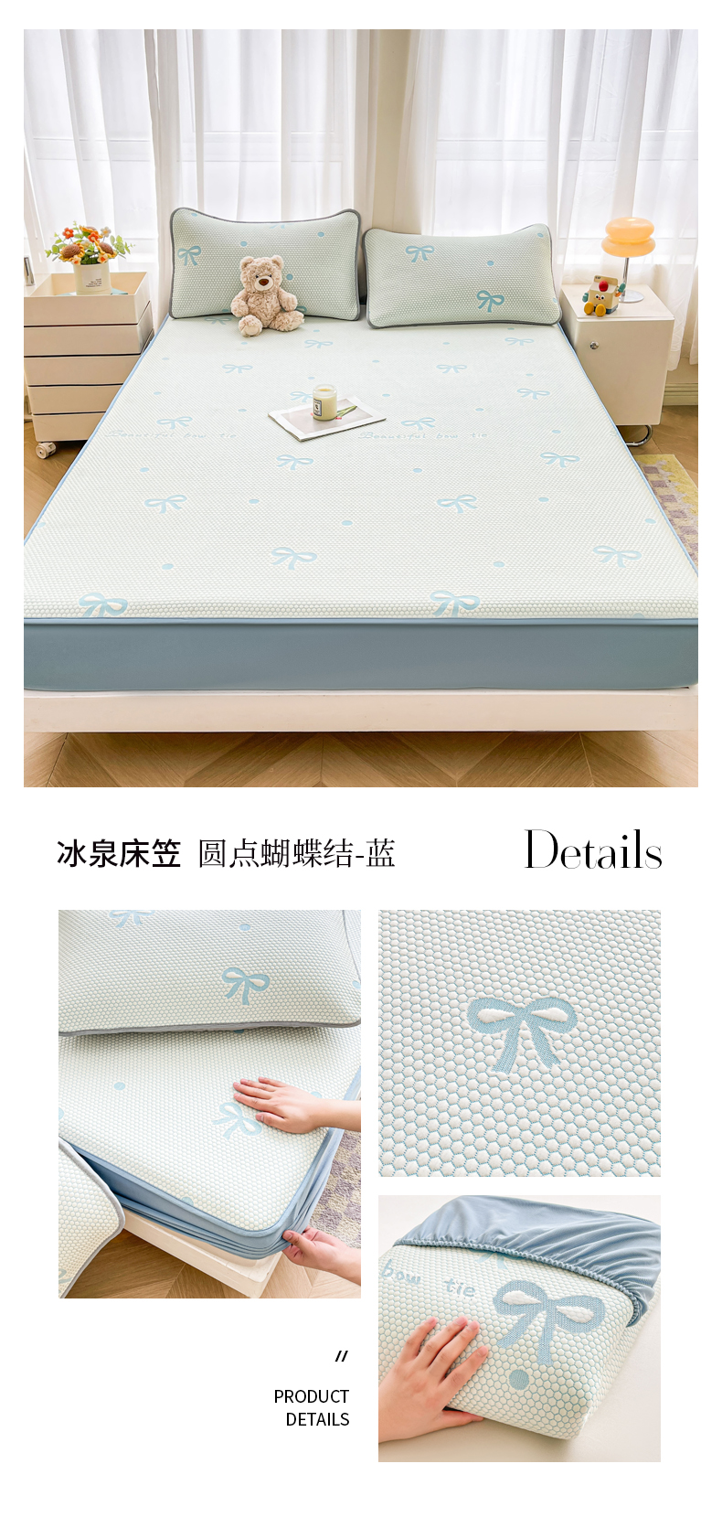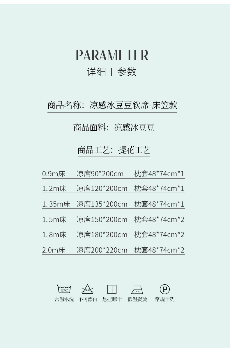 商品名称:(总)爱思凯家纺 2025新款【冰泉系列】凉感冰豆豆软席凉席席子-床笠款