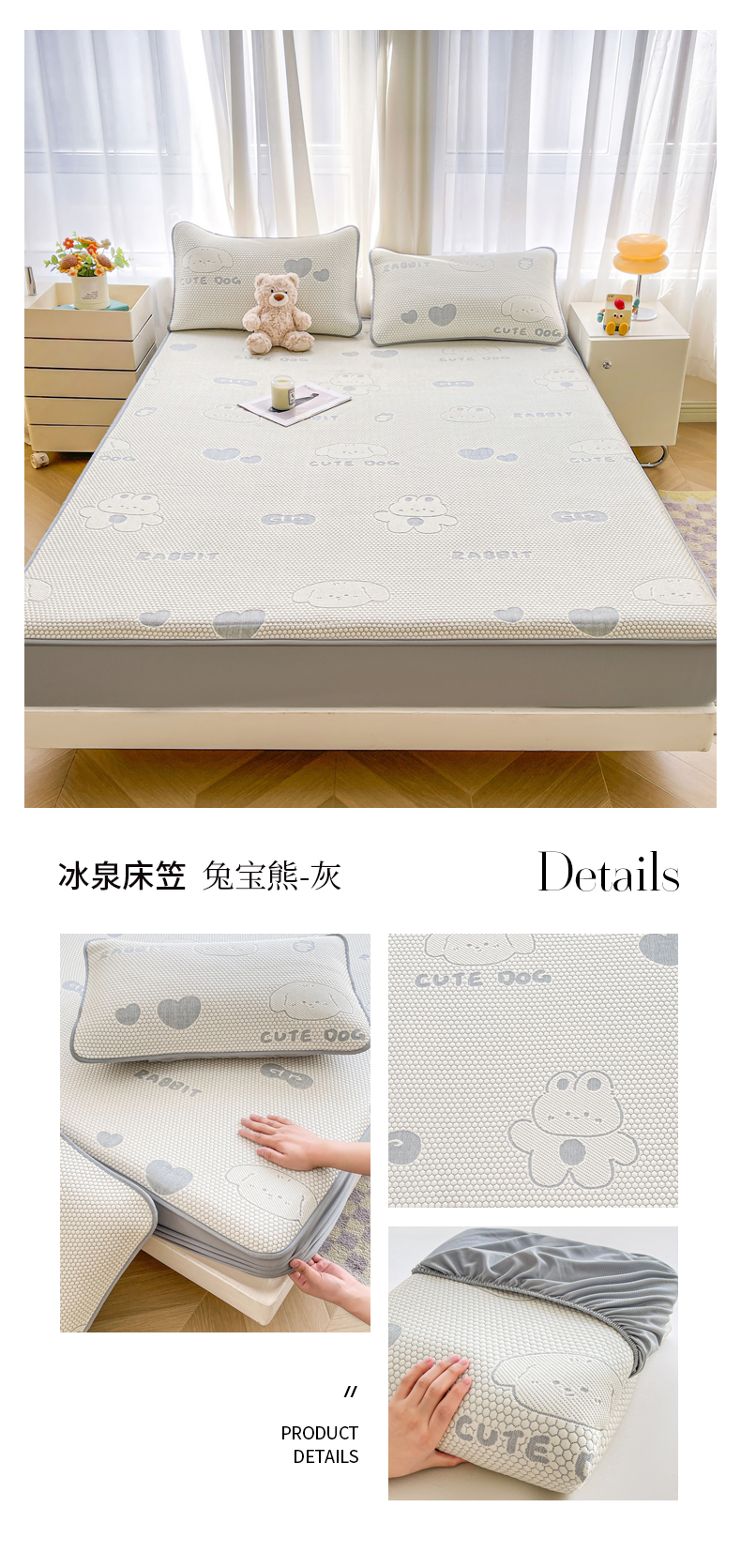 (总)爱思凯家纺 2025新款学生儿童房泡泡绒床单-松饼熊,松饼熊床单-卡其,松饼熊床单-粉,松饼熊床单-灰,松饼熊床单-蓝灰,松饼熊床单-绿,松饼熊床单-奶白