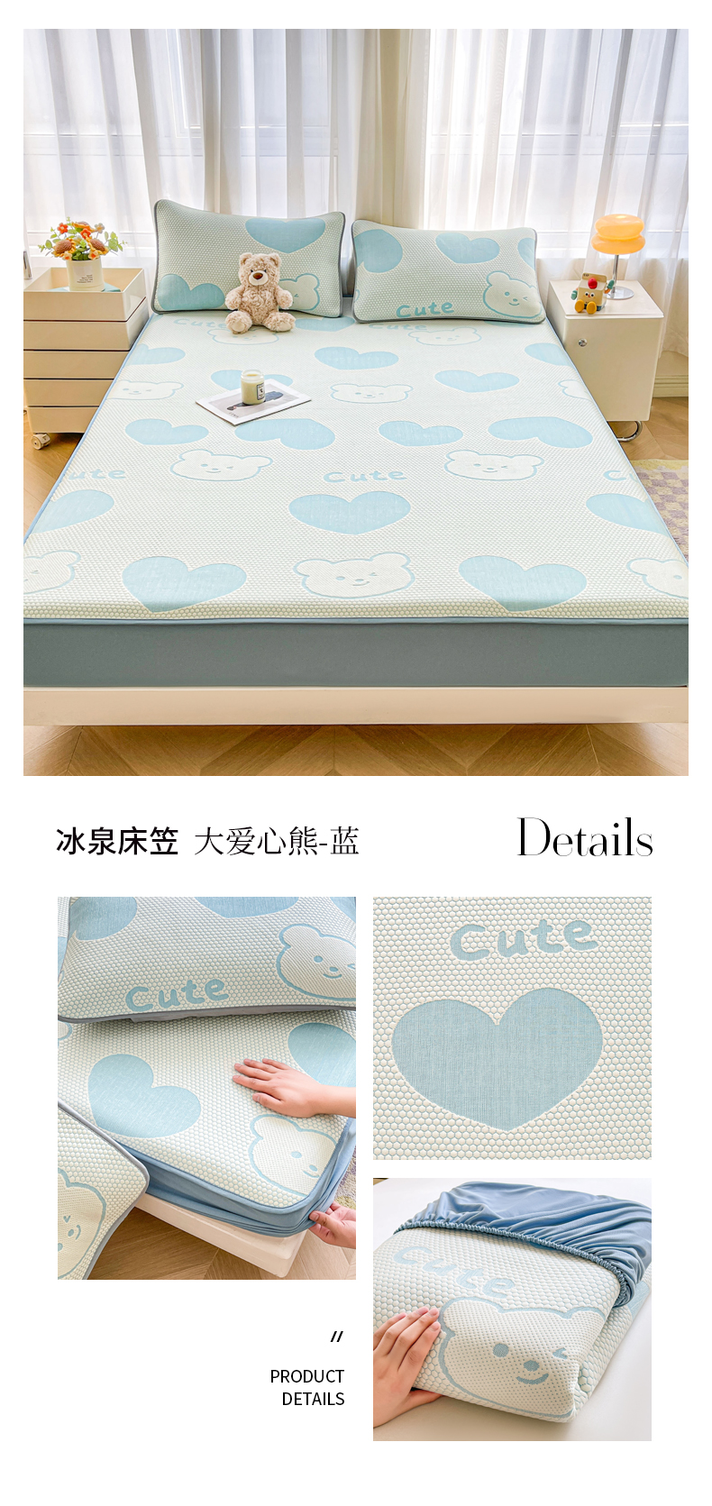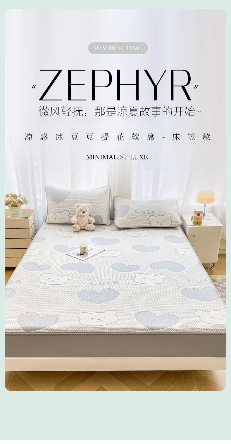 (总)爱思凯家纺 2025新款【冰泉系列】凉感冰豆豆软席凉席席子-床笠款
