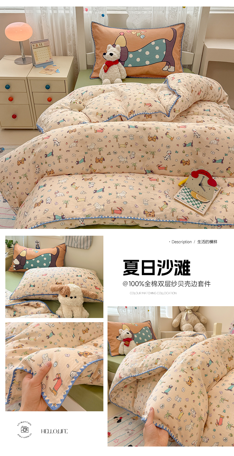 当前位置: 91家纺网 > 商品网购 > 床品套件 > 三件套 > 沐辰 2025新款全棉双层纱A类贝壳边学生床三件套 夏日沙滩
