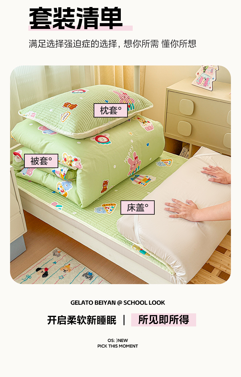 当前位置: 91家纺网 > 商品网购 > 床品套件 > 三件套 > 沐辰 2025春夏新款A类全棉纯棉学生床床盖三件套 早安小熊