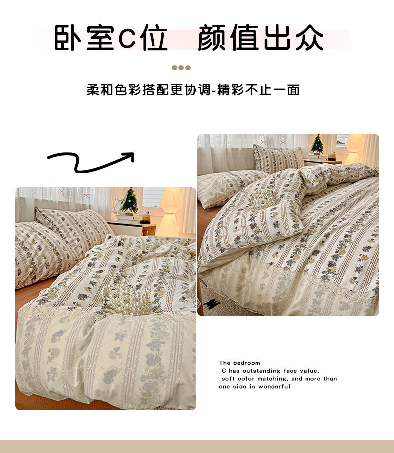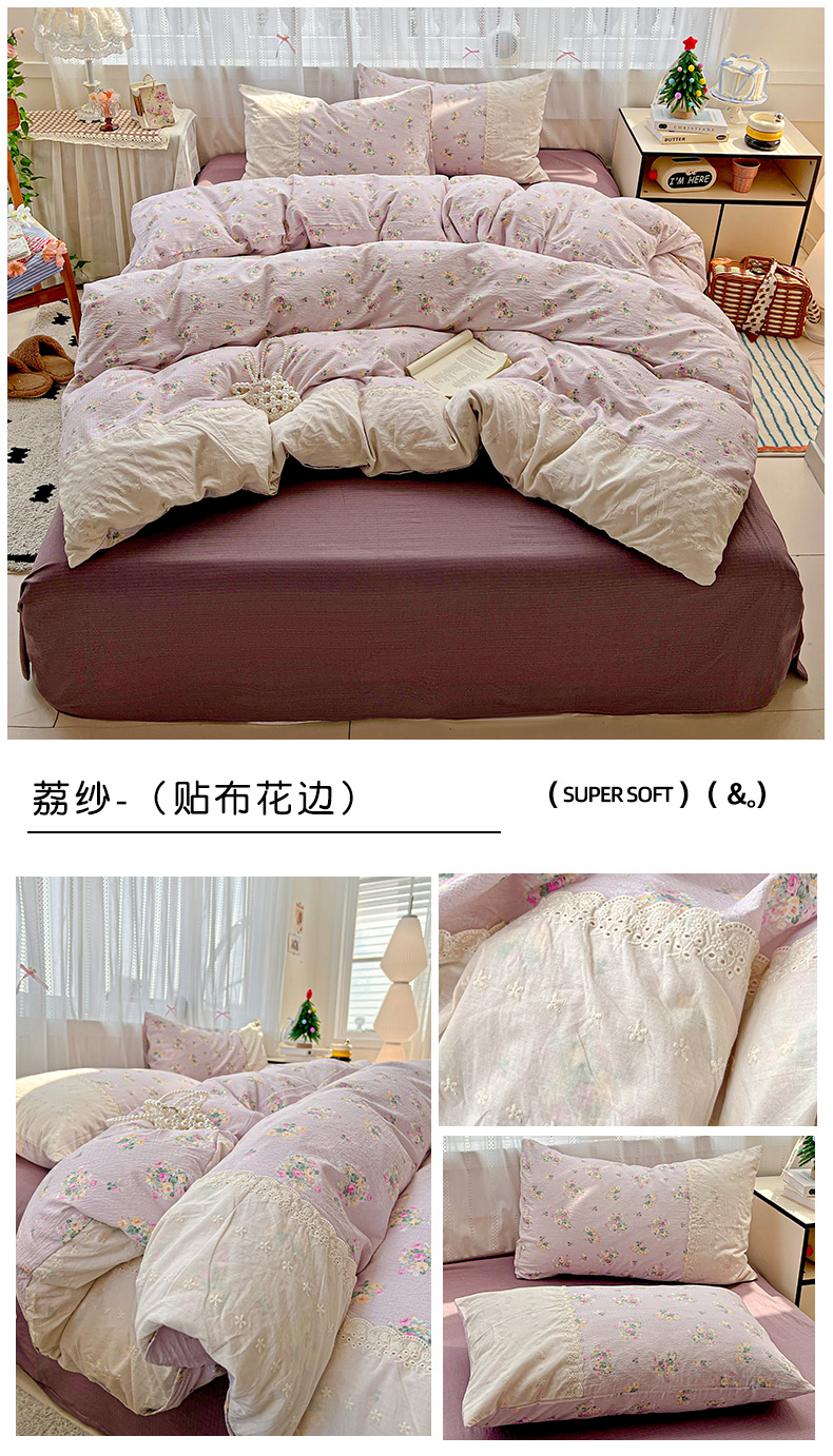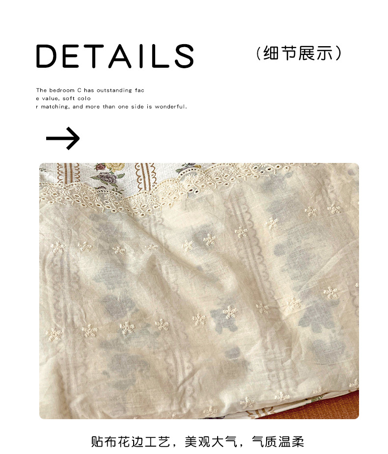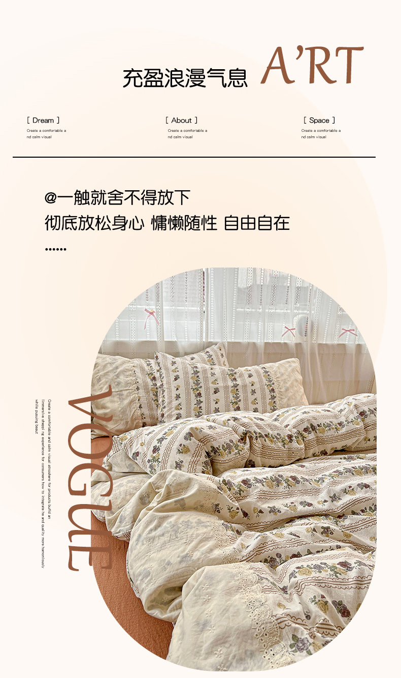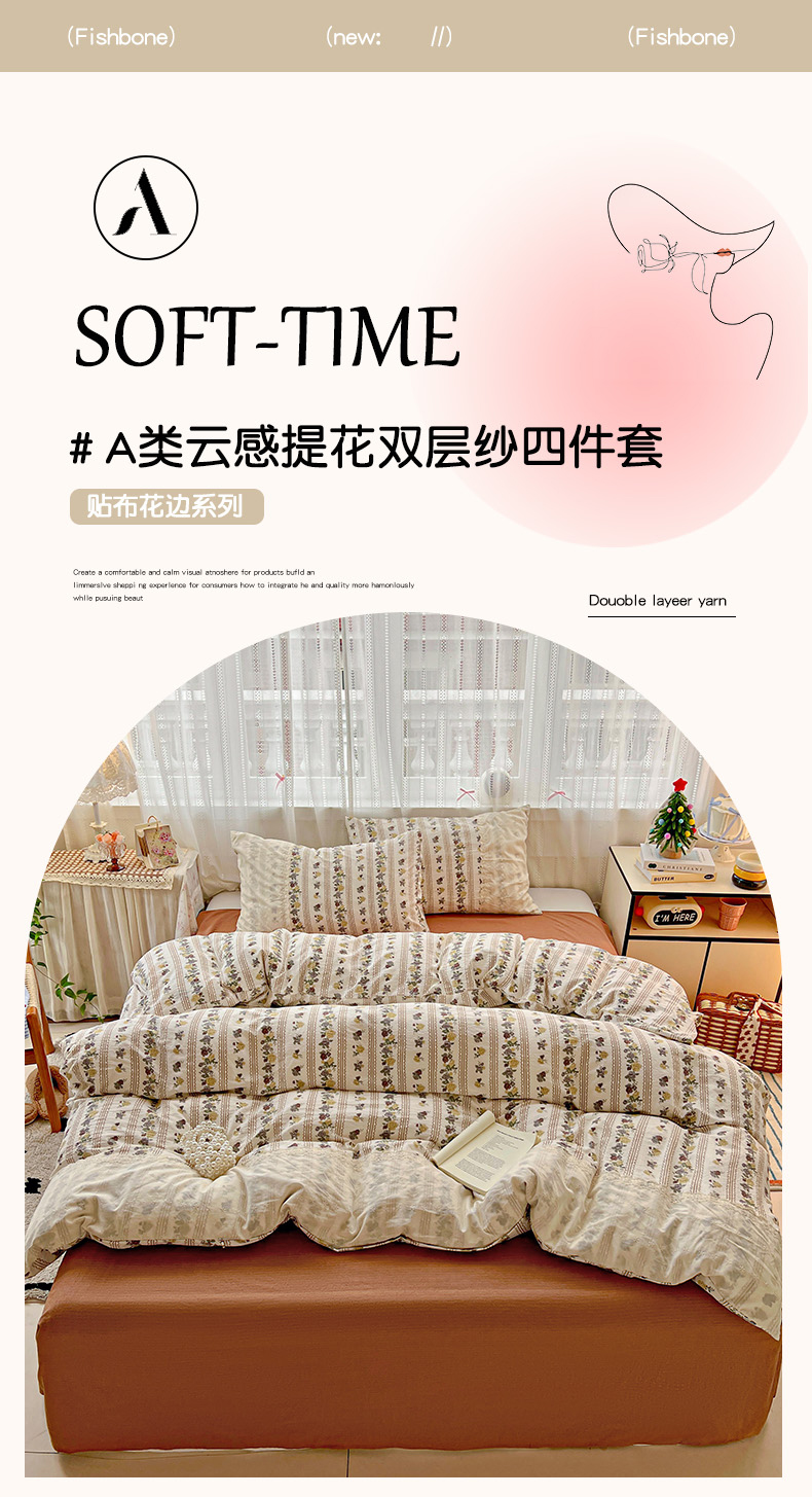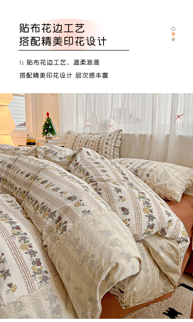 当前位置: 91家纺网 > 商品网购 > 床品套件 > 四件套 > 双层纱四件套 > 喜颜 2025新款云感木棉双层纱贴布花边爆款四件套 玫瑰庄园-(贴布花边)