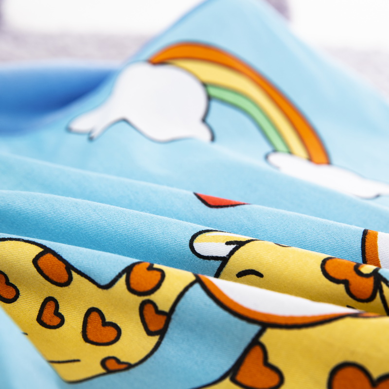 商品名称:大黄蜂家居家纺 2025新款全棉13372棉儿童卡通乳胶枕套 彩虹小鹿