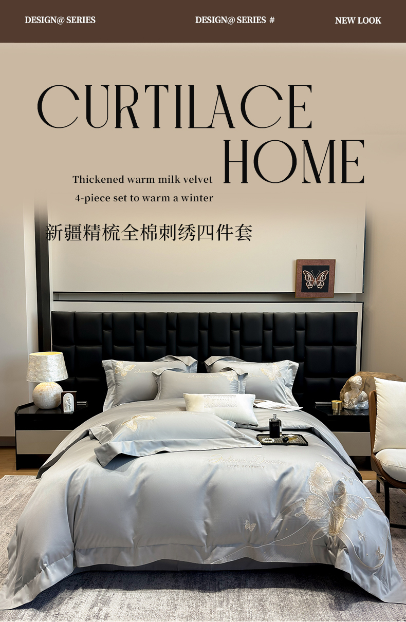 (总)星蕴家纺 2026新款A类新疆全棉刺绣四件套-千禧,高级灰,千禧粉,奶昔白,浅香槟