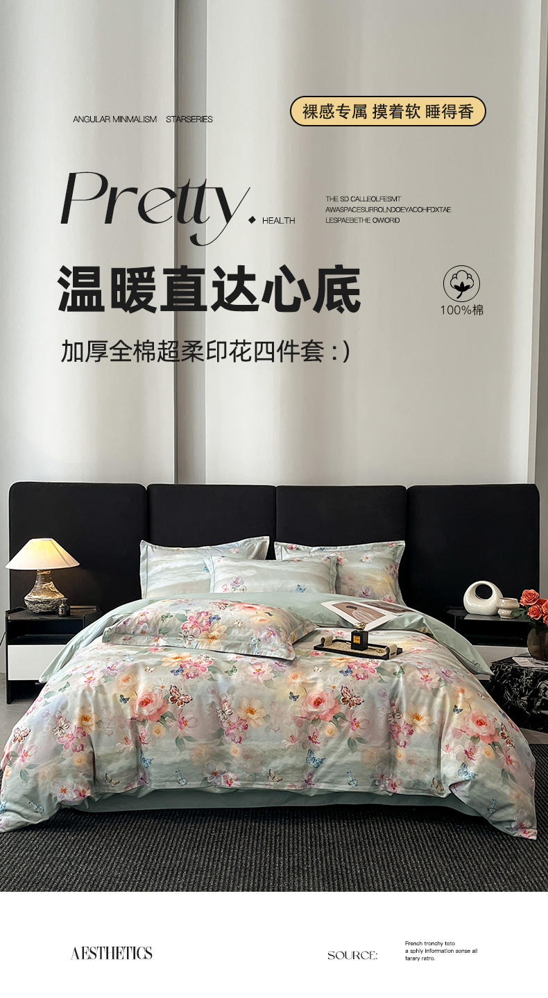 当前位置: 91家纺网 > 商品网购 > 床品套件 > 四件套 > 全棉普通四件套 > 格里芬 2025全棉加厚磨毛纯棉生态磨毛印花四件套 菲雅-兰