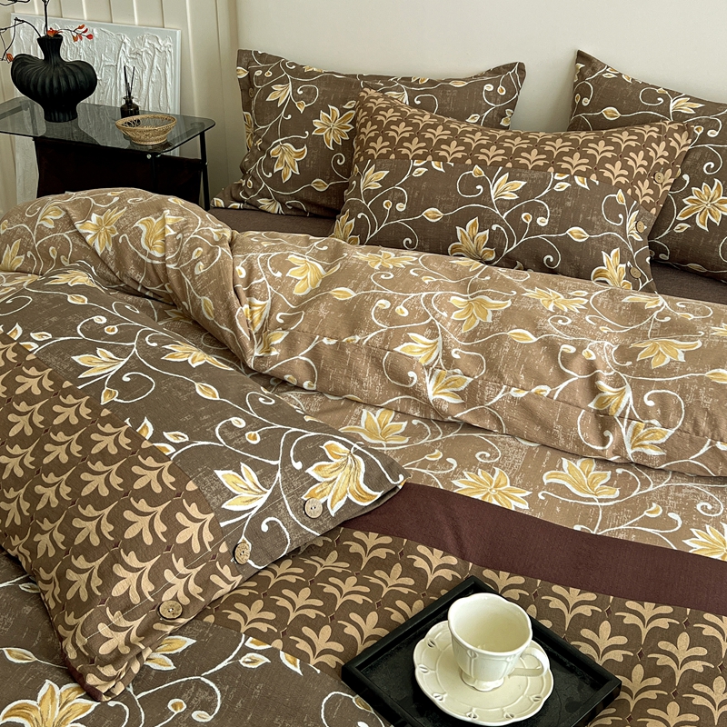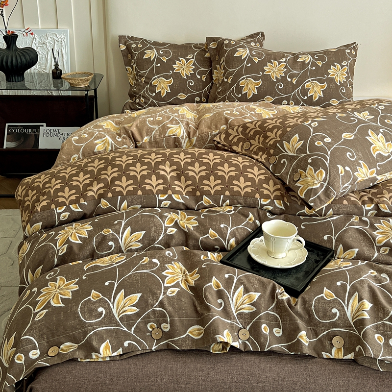 仟网汇 2025新款亚麻纽扣款四件套 一路繁花