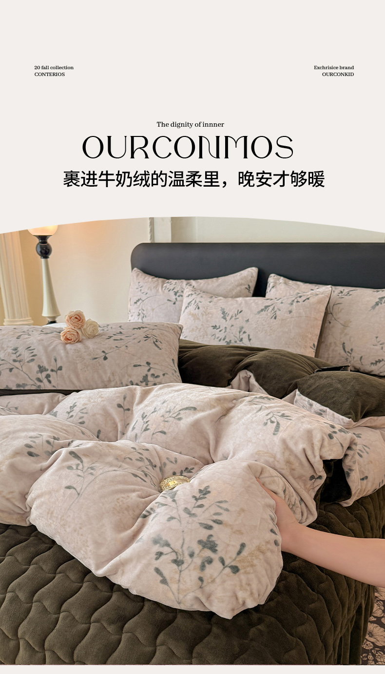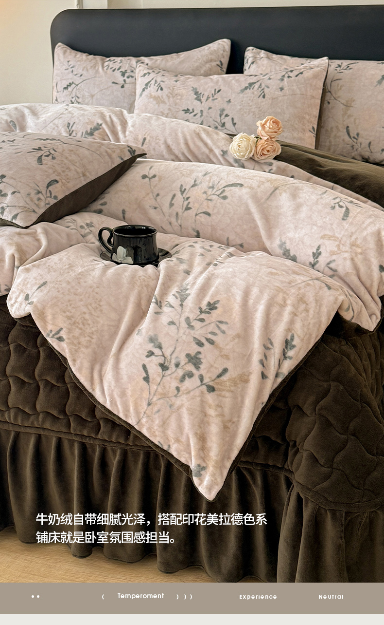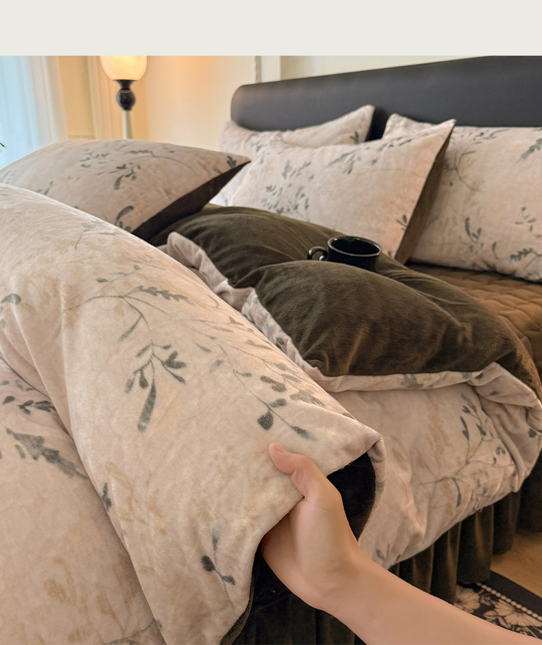 当前位置: 91家纺网 > 商品网购 > 床品套件 > 四件套 > 其它四件套 > 金盛皇朝家纺 2025新款高克重美拉德牛奶绒床单床盖单件三件四件套 青枝缀叶