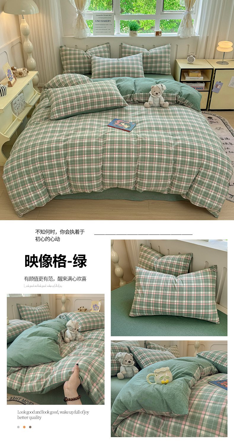 商品名称:宜家坊 2025新款A类全棉色织水洗棉单枕套系列 纯色-果绿
