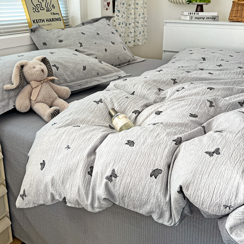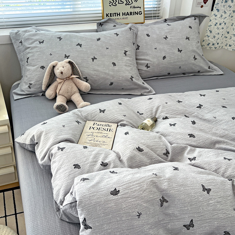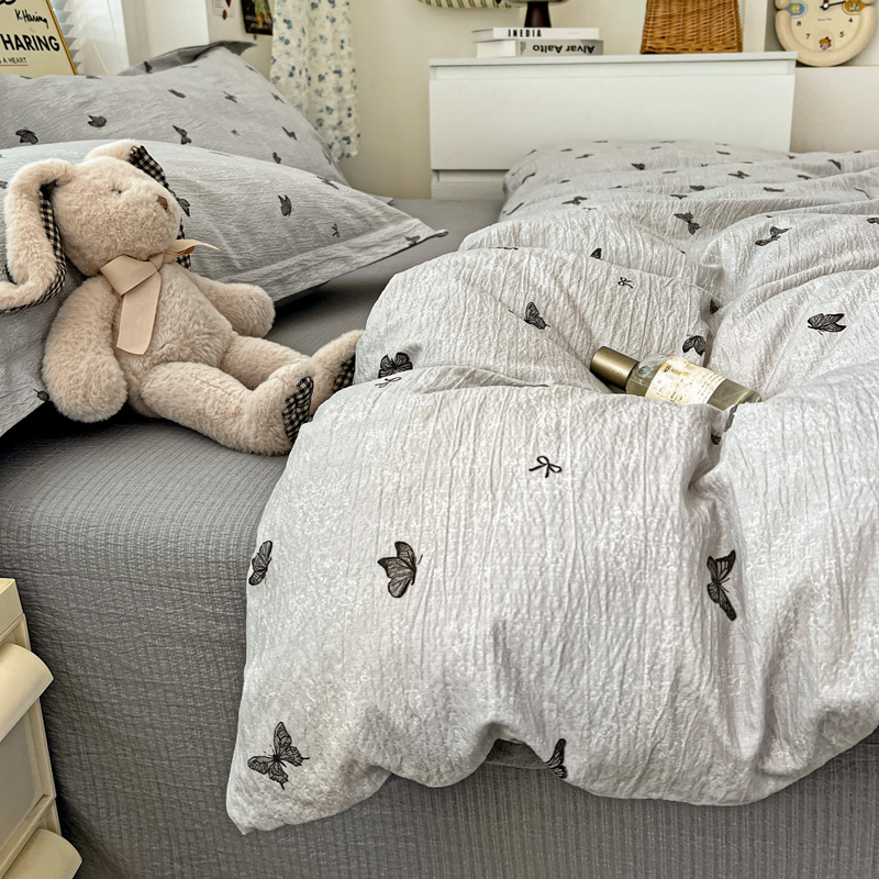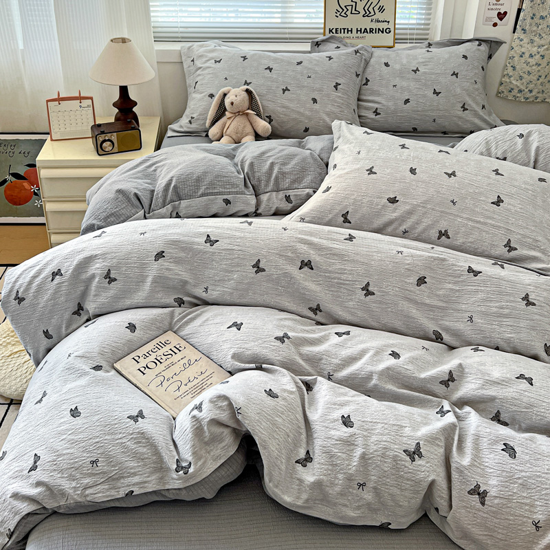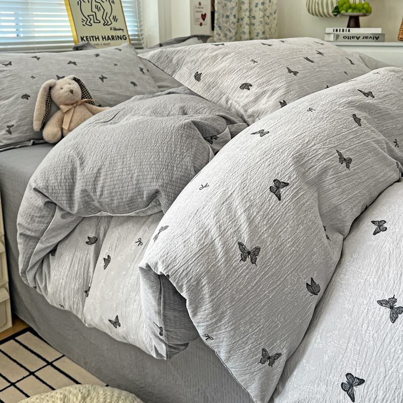 商品名称:仟网汇 2025新款古法水洗棉小布袋四件套 浮生若梦-灰
