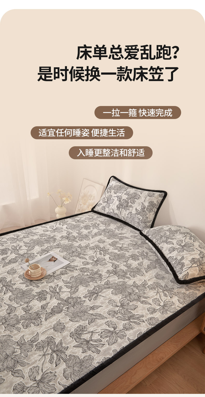 吾秀家居 2025新款高克重雕花牛奶绒单床笠床笠单件 木瑾