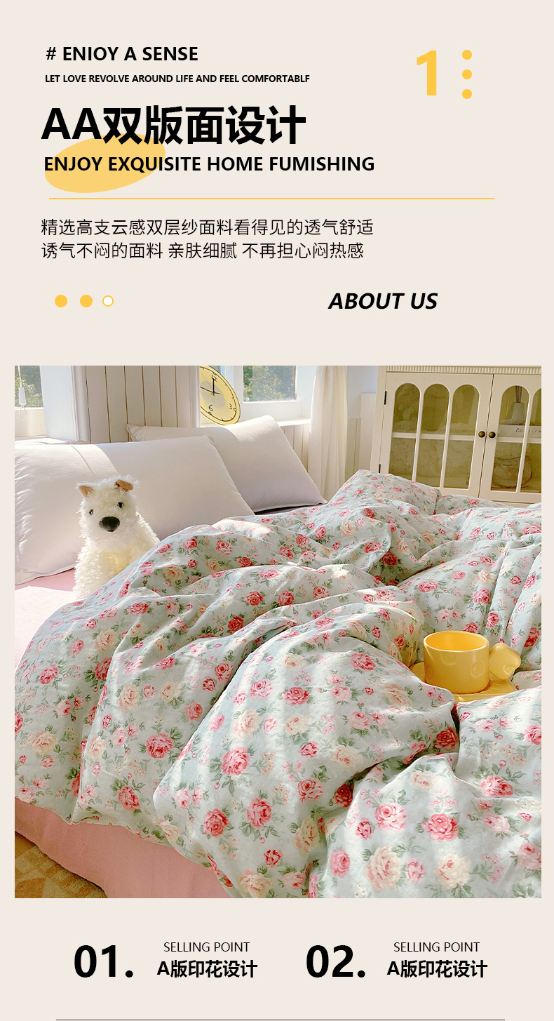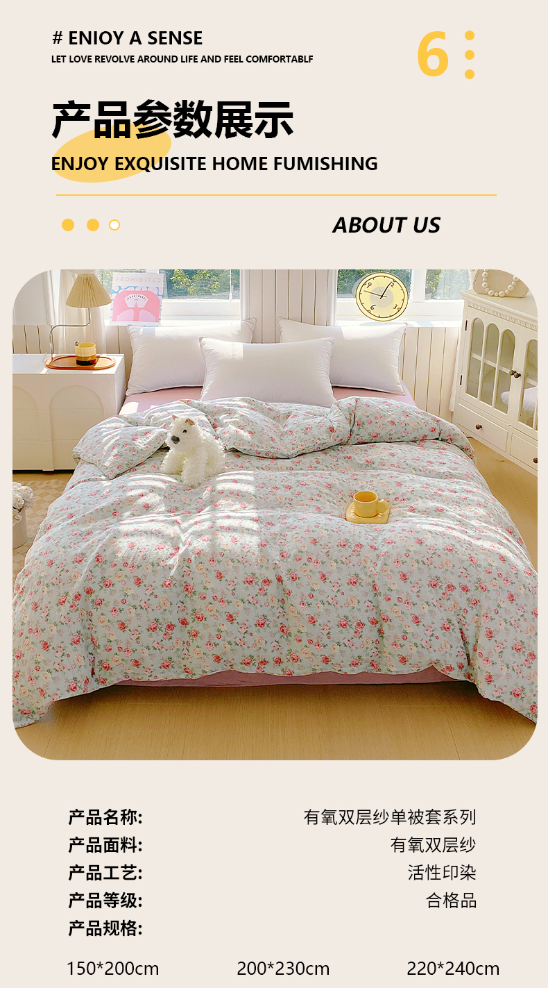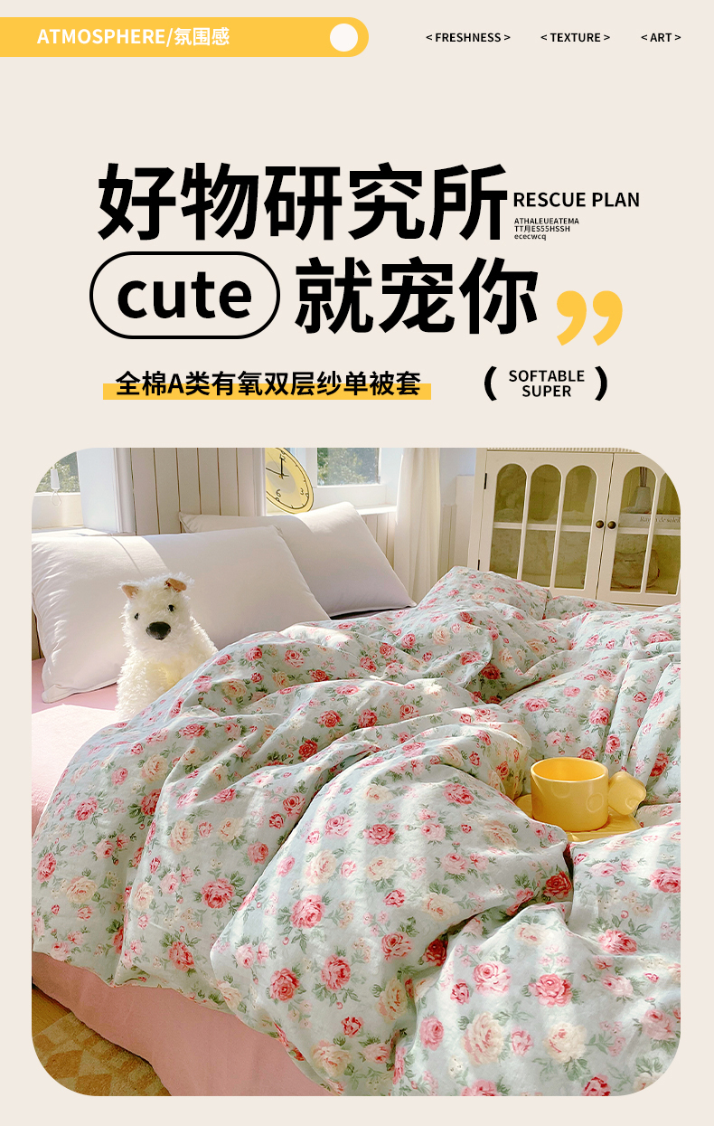 商品名称:(总)春皖家纺 2026新款A类全棉有氧双层纱印花四件套单品系列-单被套