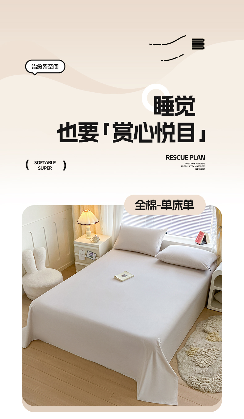 180*230cm单床单+枕套1对