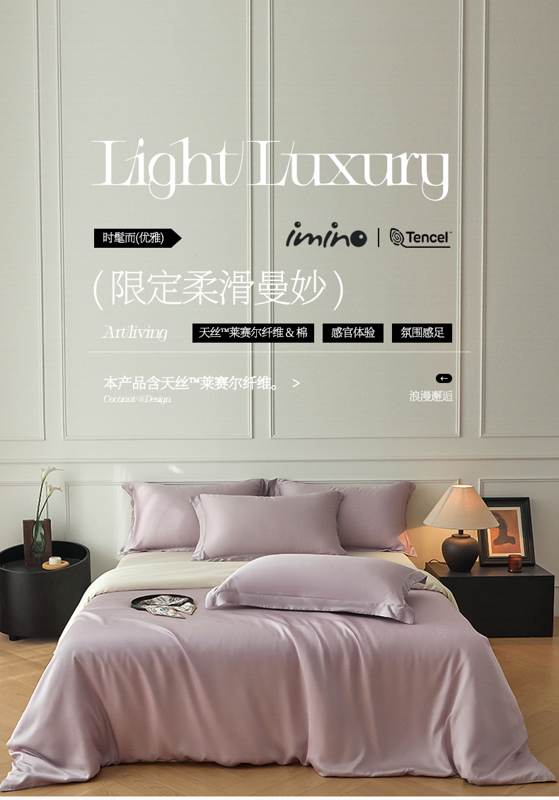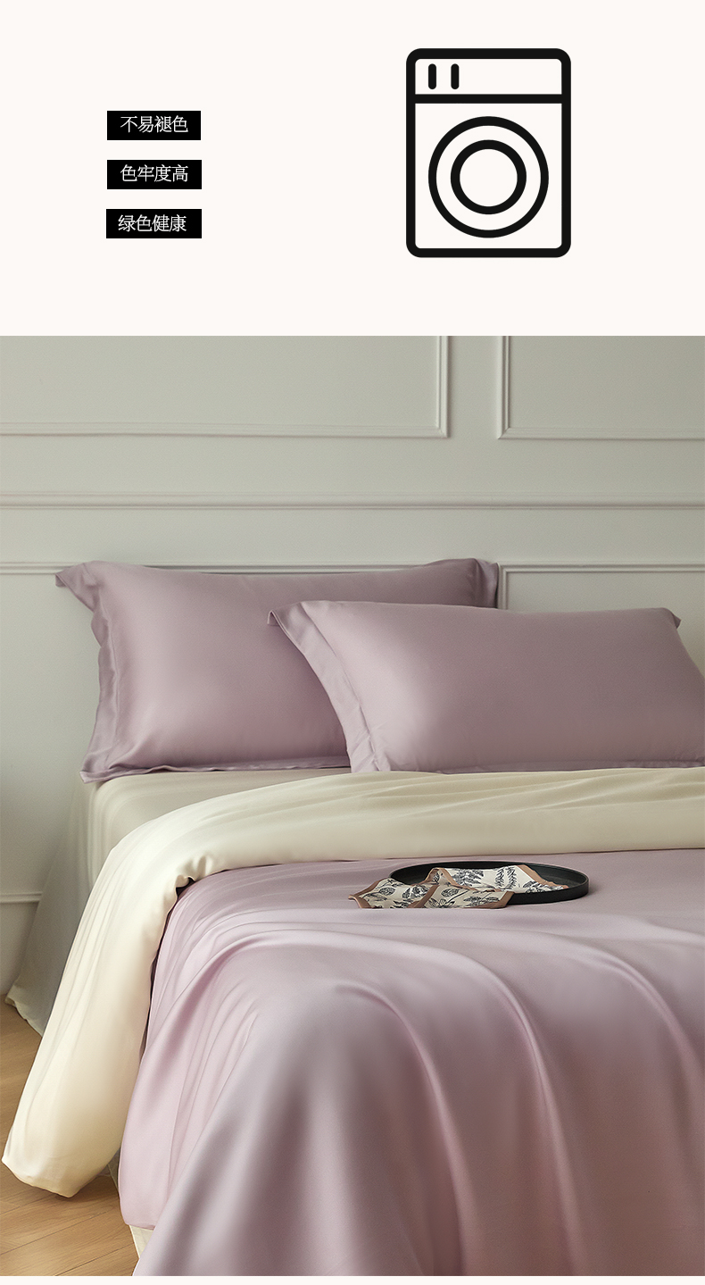 涵宸家纺 2026新款纯色天丝棉单被套-场景一 紫语+象牙白