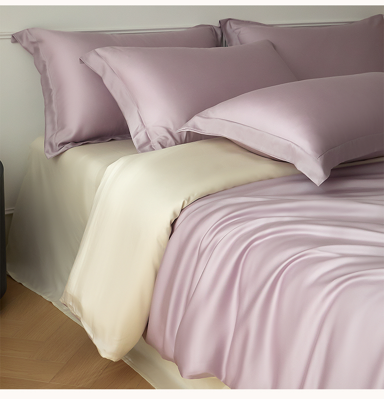 商品名称:涵宸家纺 2026新款纯色天丝棉单被套-场景一 紫语+象牙白