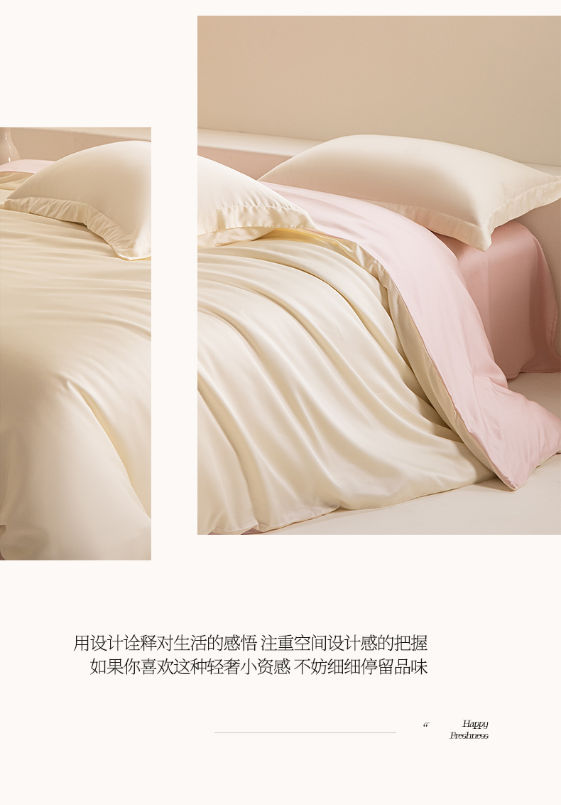 当前位置: 91家纺网 > 商品网购 > 床品套件 > 四件套 > 其它四件套 > 涵宸家纺 2026新款纯色天丝棉四件套-场景二 象牙白+玫瑰粉