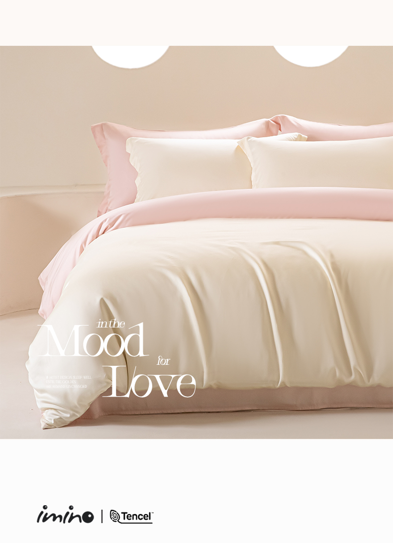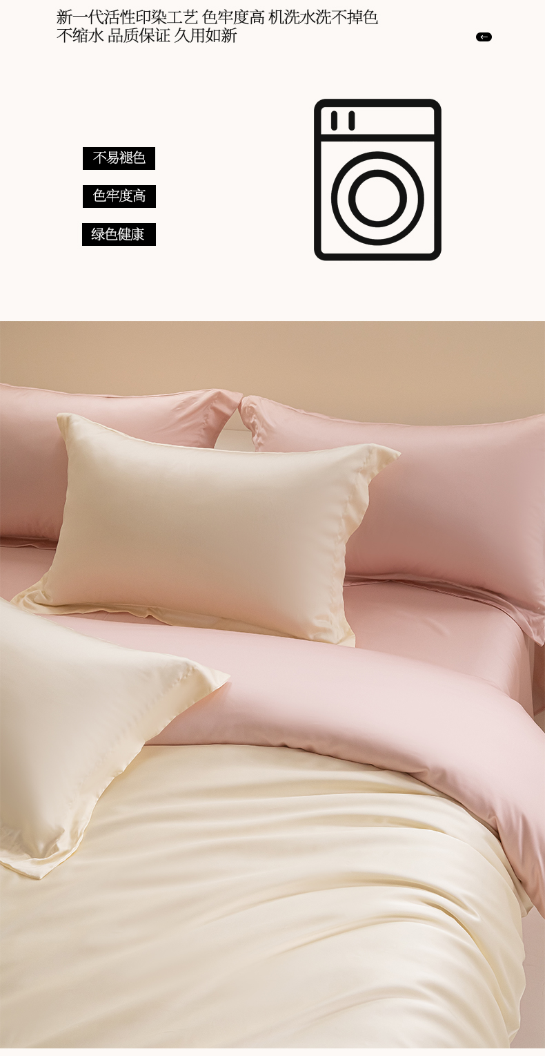 • 91家纺网 家纺一手货源 找家纺 涵宸家纺 2026新款纯色天丝棉四件套-场景二 象牙白+玫瑰粉