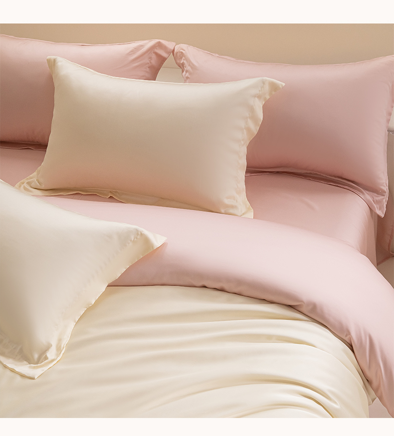涵宸家纺 2026新款纯色天丝棉四件套-场景二 象牙白+玫瑰粉