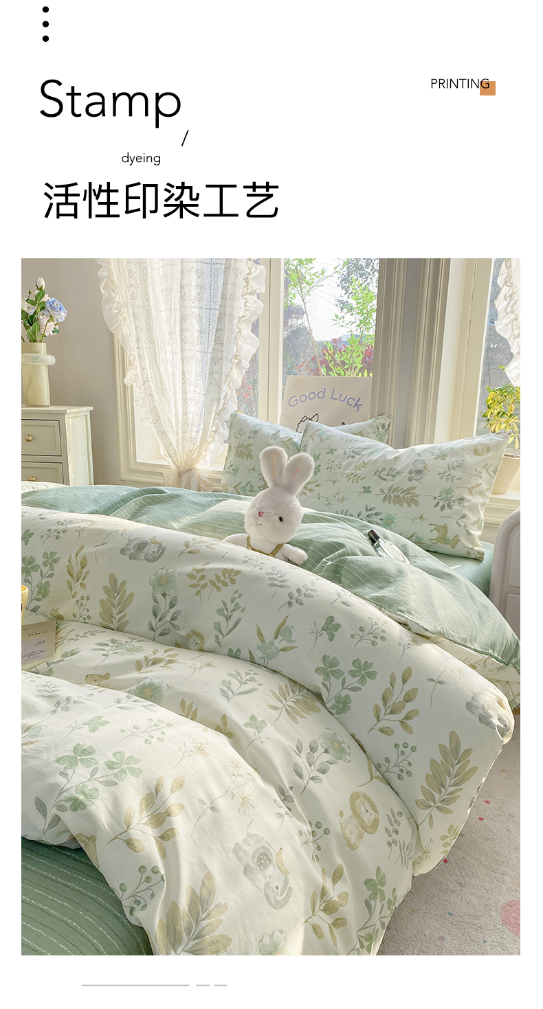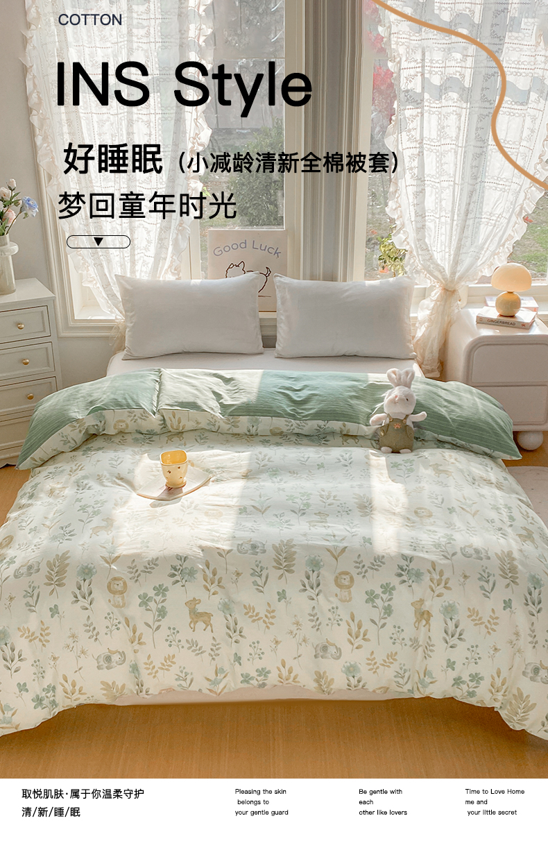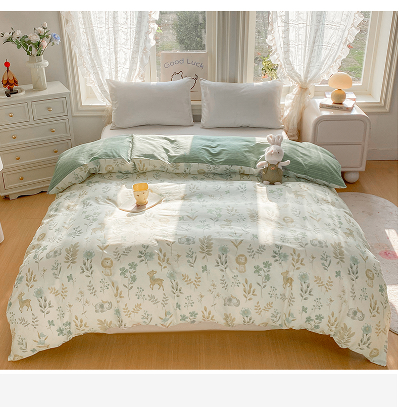商品名称:黑马家居 2026新款13070全棉印花小清新卡通花卉单品被套系列 幸运叶