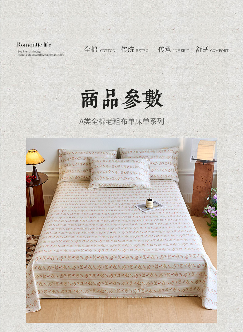 春皖家纺 2026春夏新品简约款老粗布系列床单单品床单床单单件 知否