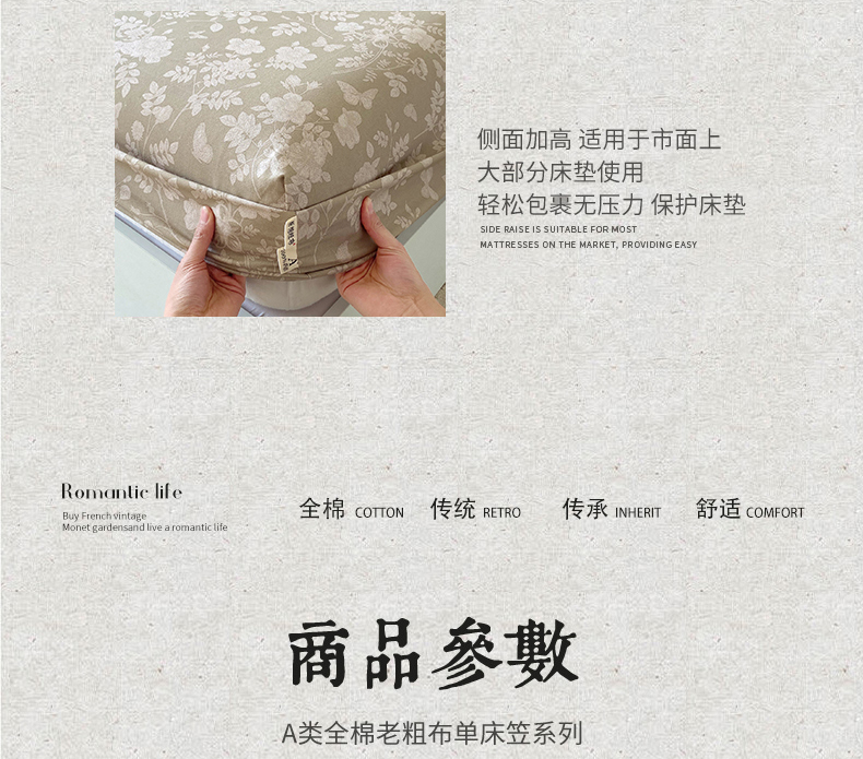 商品名称:春皖家纺 2026春夏新品简约款老粗布系列床笠品单床笠 床笠单件 幽色