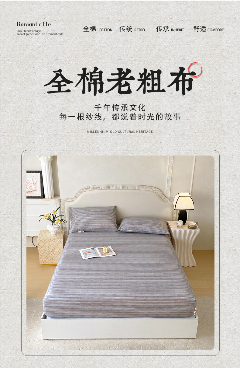 春皖家纺 2026春夏新品简约款老粗布系列床笠品单床笠 床笠单件 知一Y