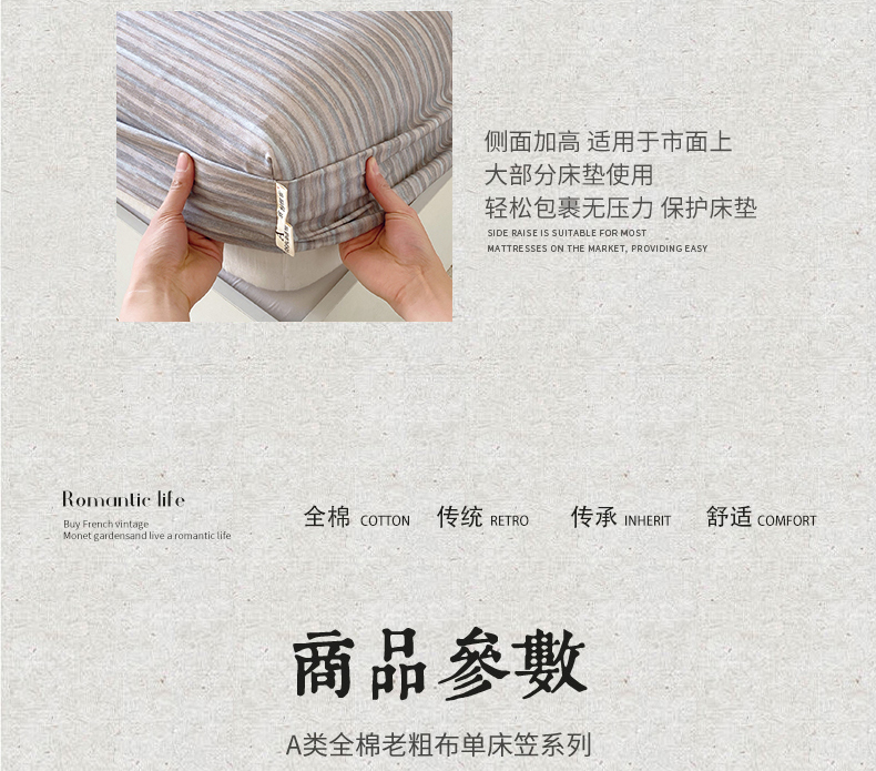 商品名称:春皖家纺 2026春夏新品简约款老粗布系列床笠品单床笠 床笠单件 知一Y