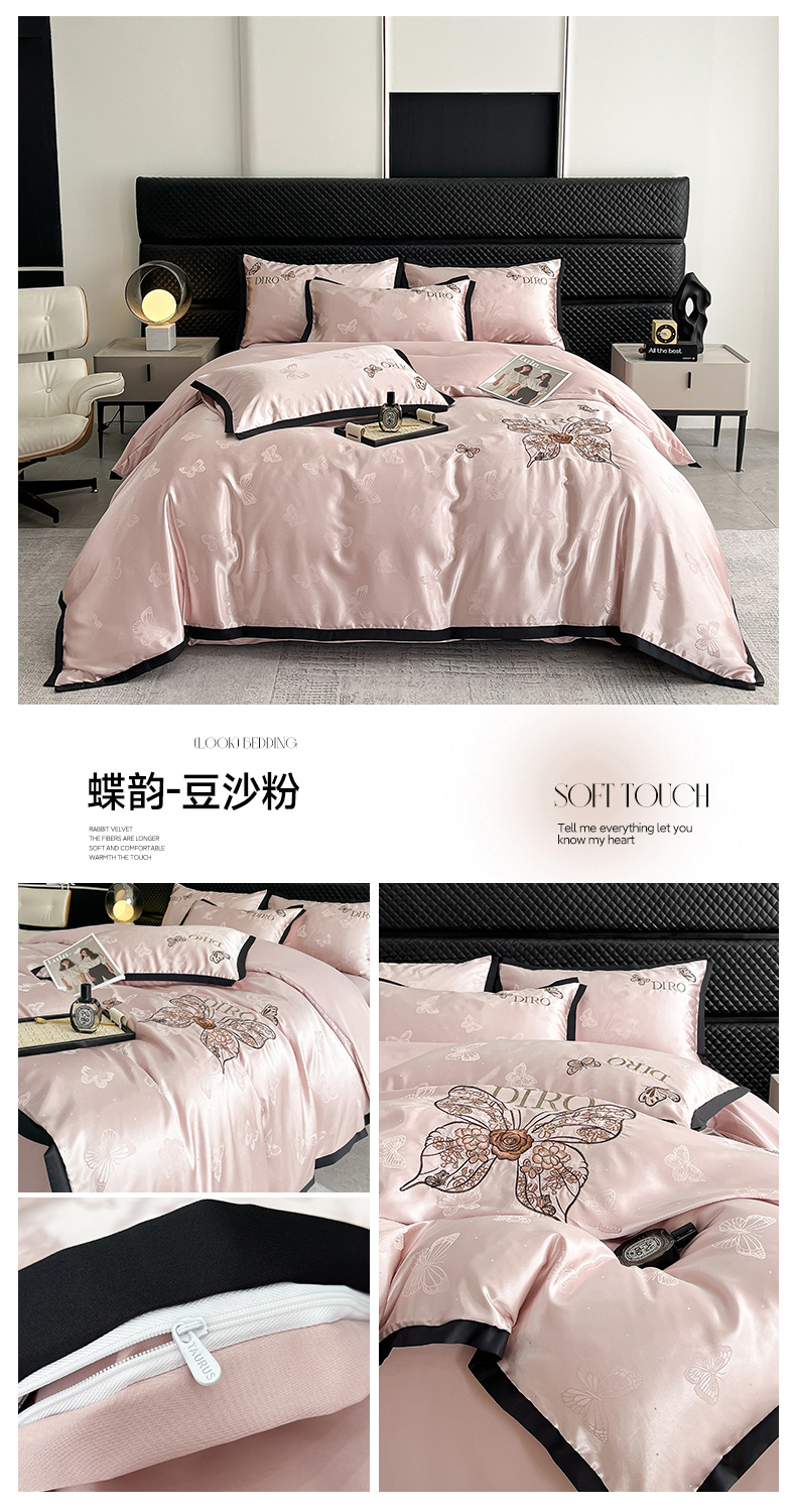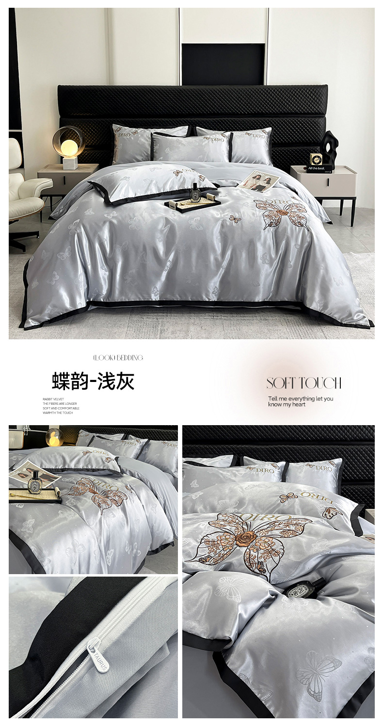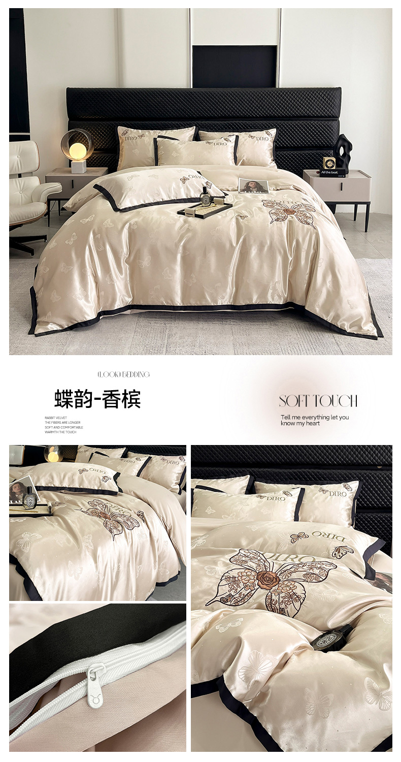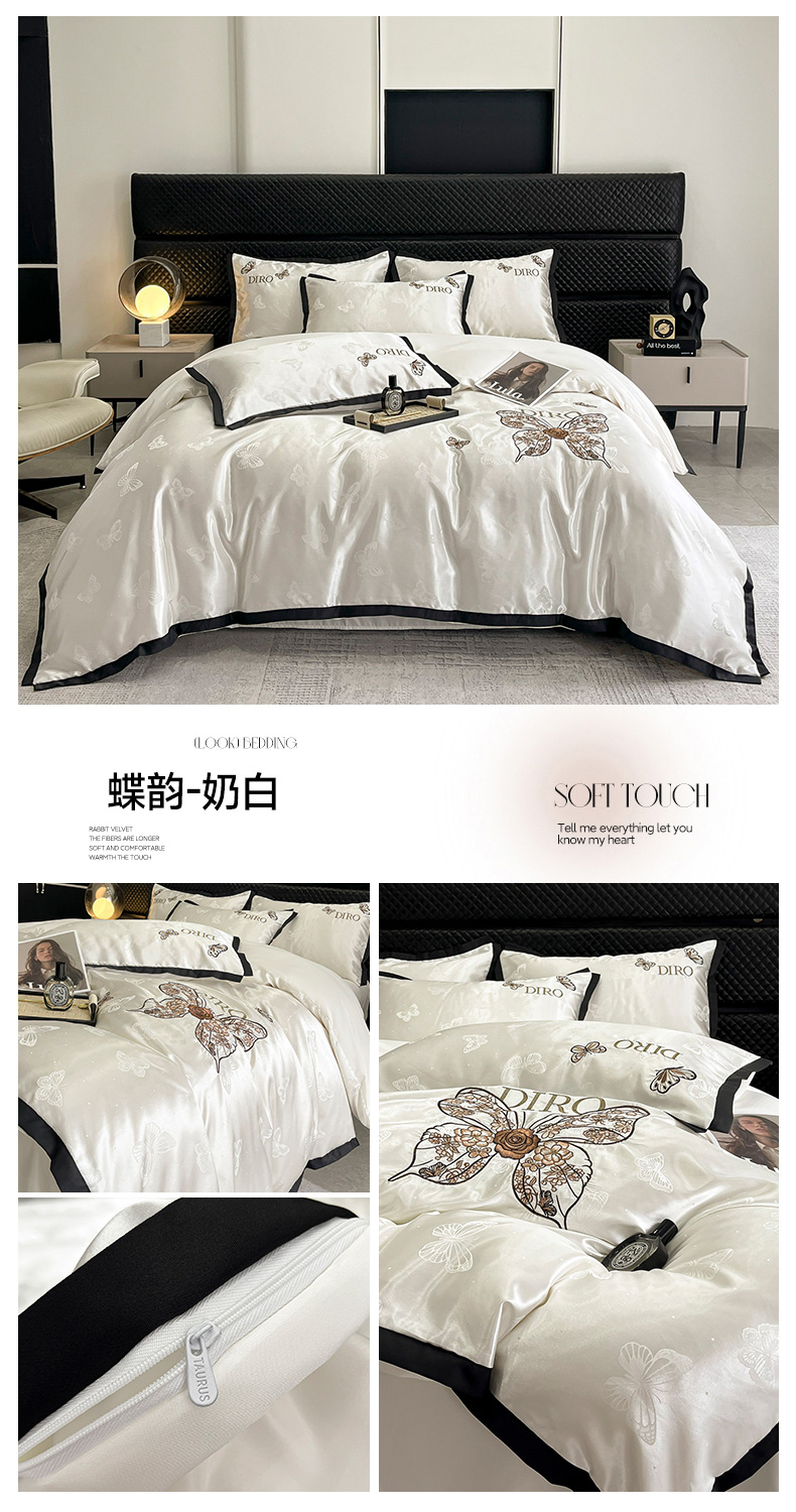 商品名称:(总)金牛座家纺 2026新款贡缎亮丝提花刺绣四件套-蝶韵