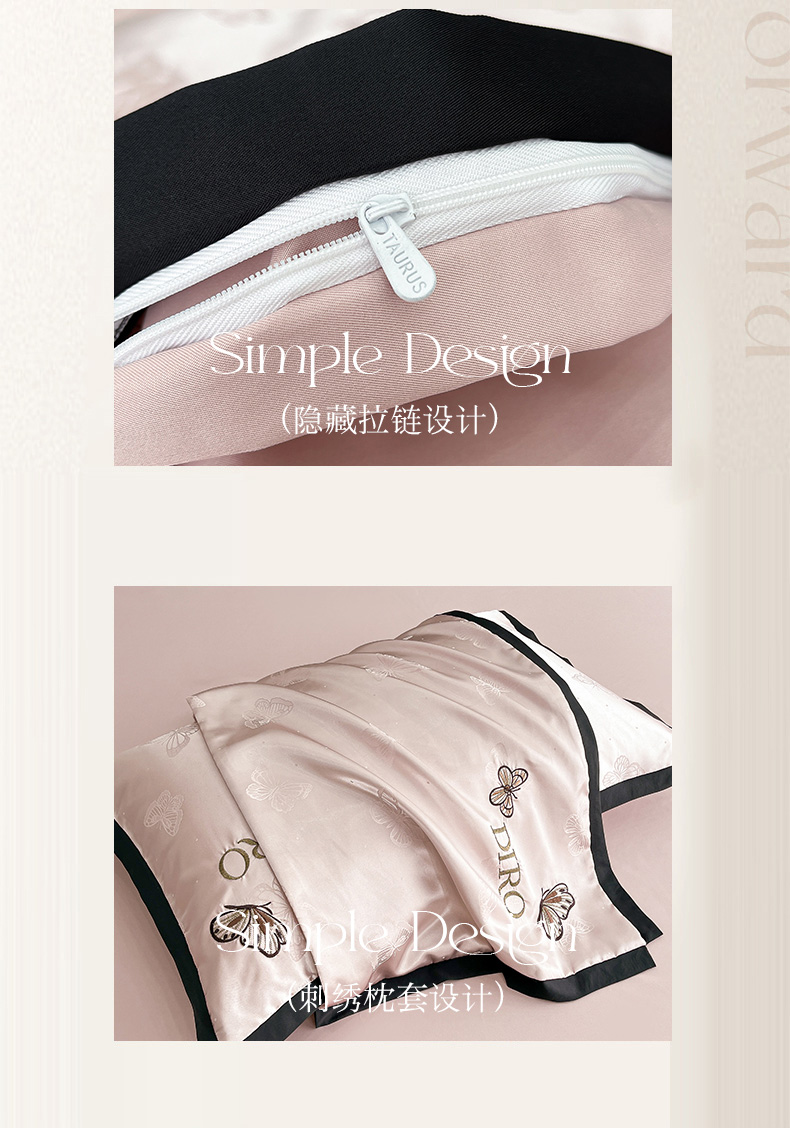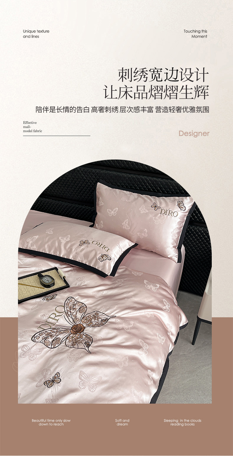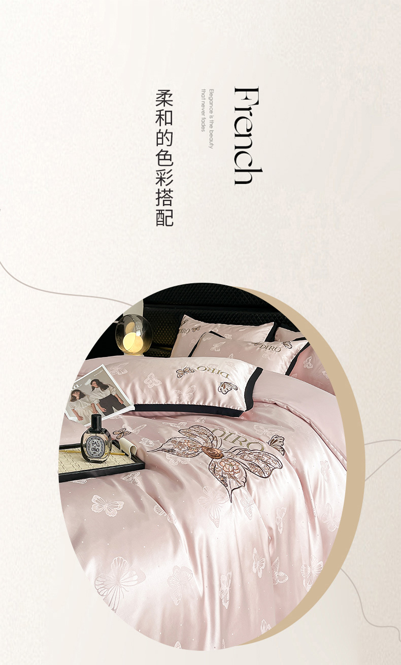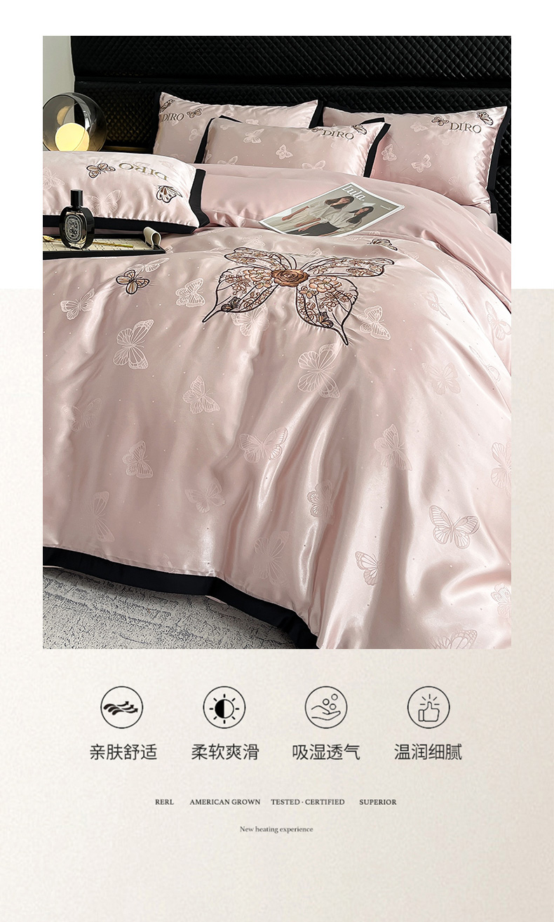 商品名称:(总)金牛座家纺 2026新款贡缎亮丝提花刺绣四件套-蝶韵