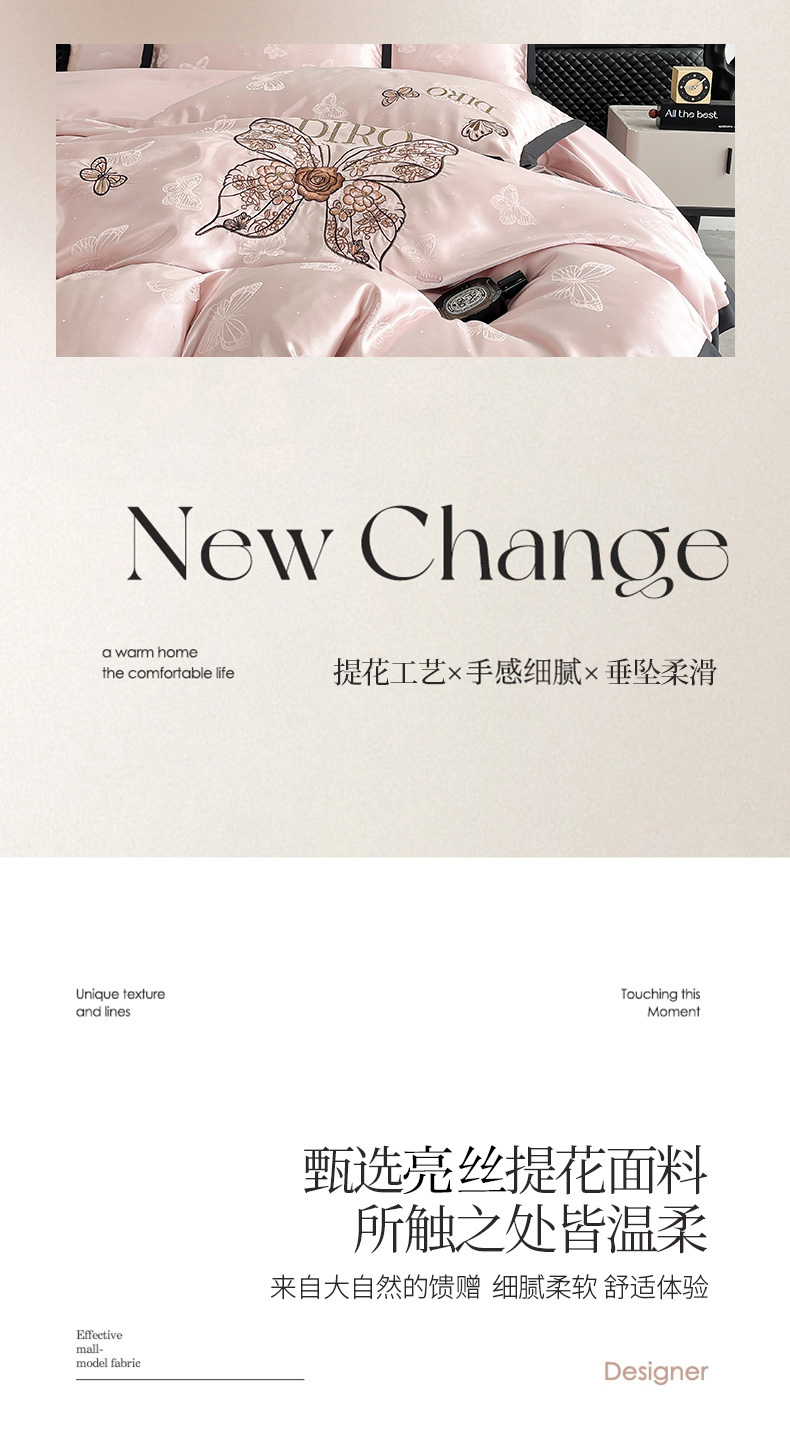 (总)金牛座家纺 2026新款贡缎亮丝提花刺绣四件套-蝶韵