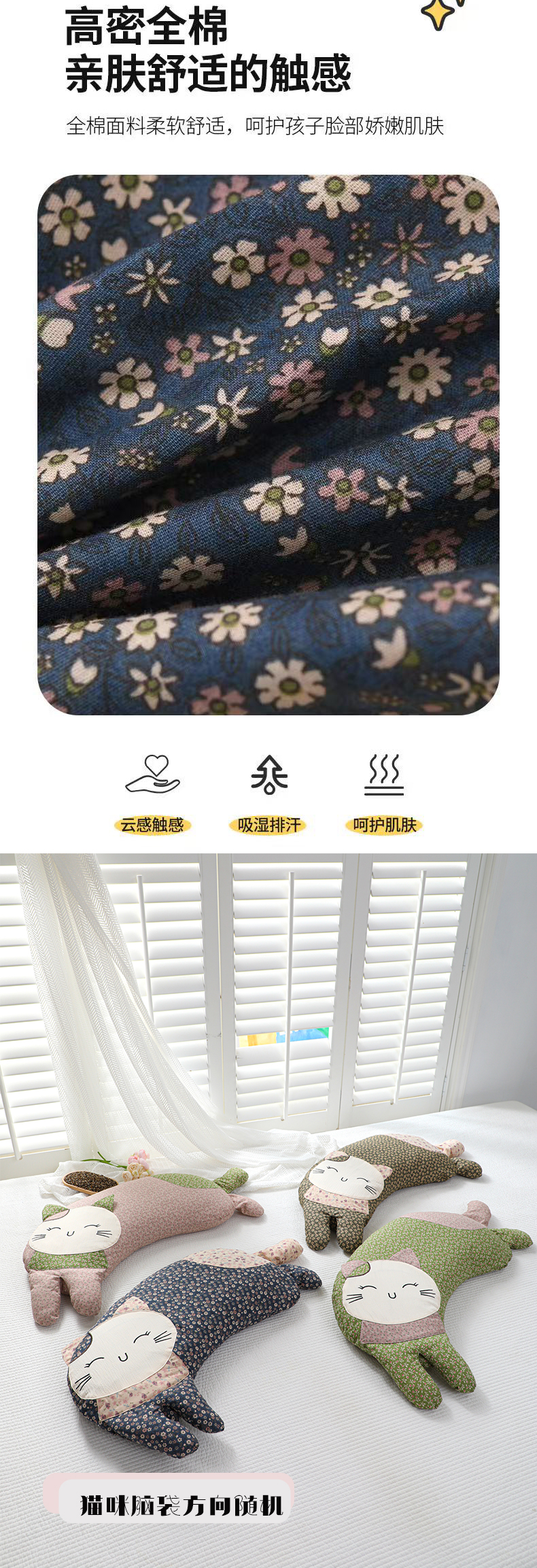 当前位置: 91家纺网 > 商品网购 > 枕头/枕芯/保健枕/颈椎枕 > 普通枕芯 > 芯洲 2026年新款卡通猫咪造型可爱抱枕荞麦枕枕头枕芯 幸福喵-深蓝 30*60cm/只
