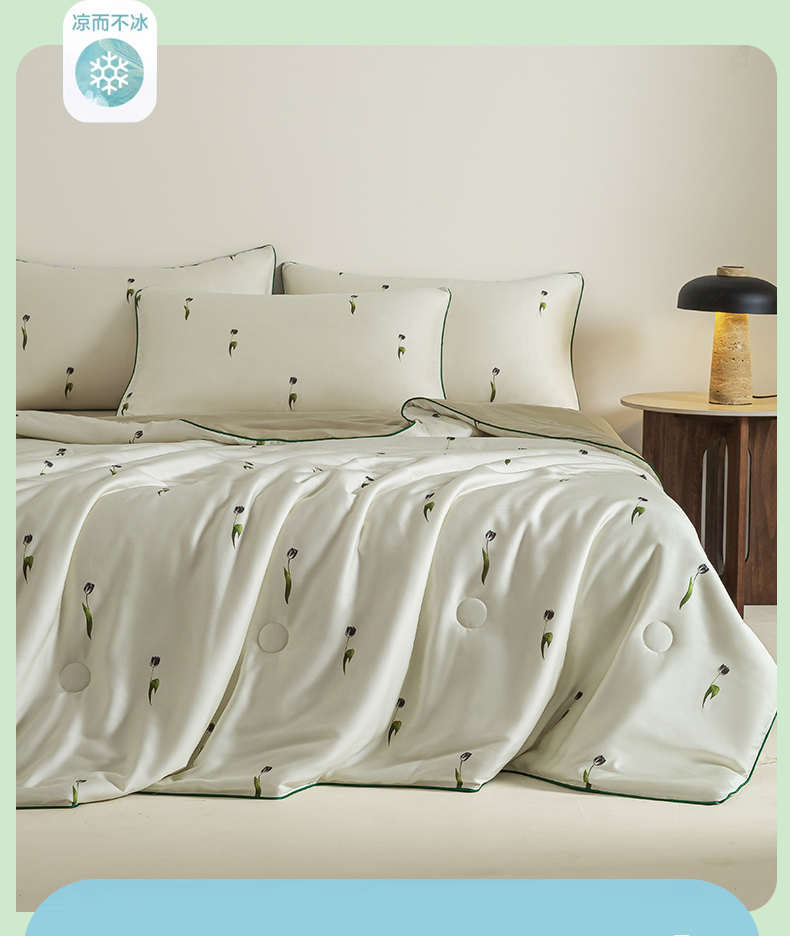 商品名称:(总)爱彼家纺 2026新款冰丝印花夏被四件套滚边设计款冰丝空调被印花单夏被-系列一