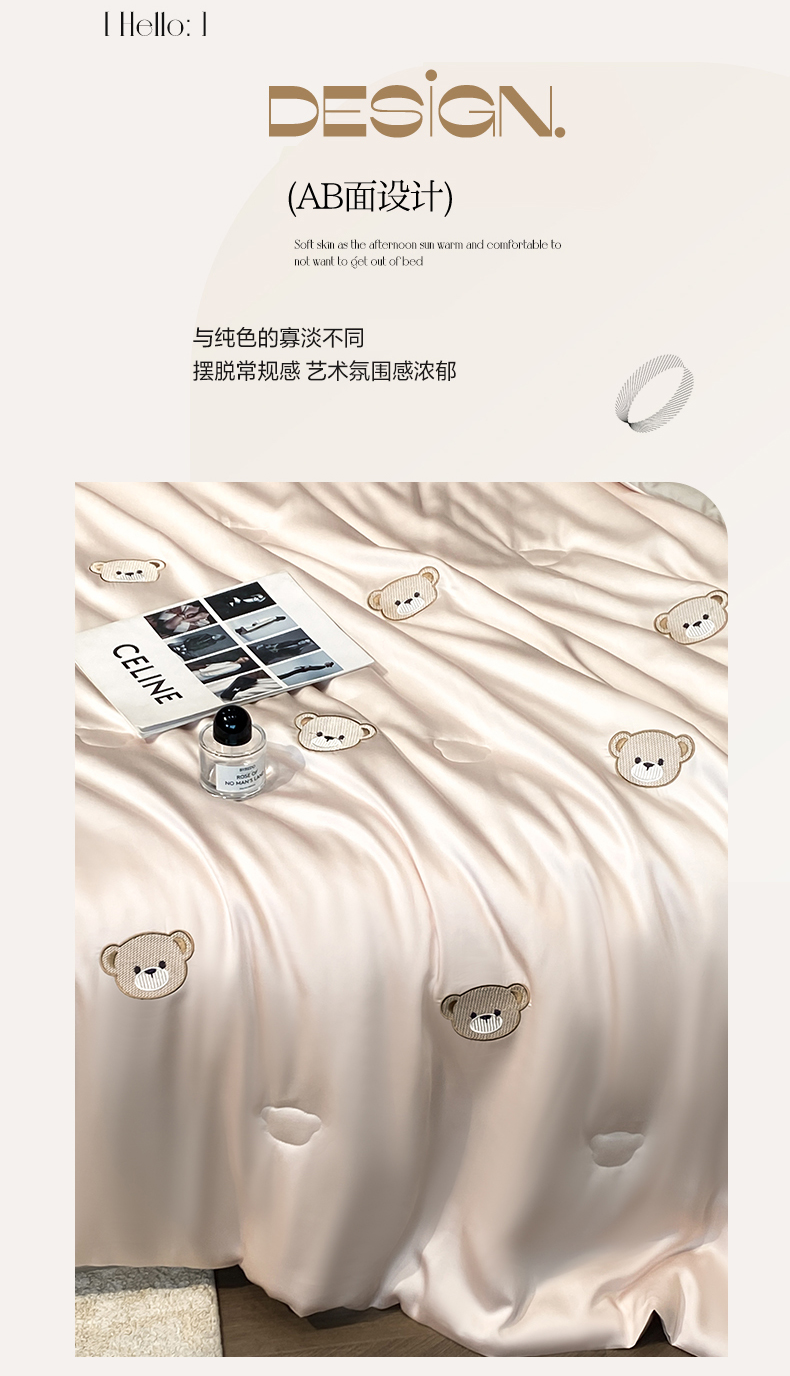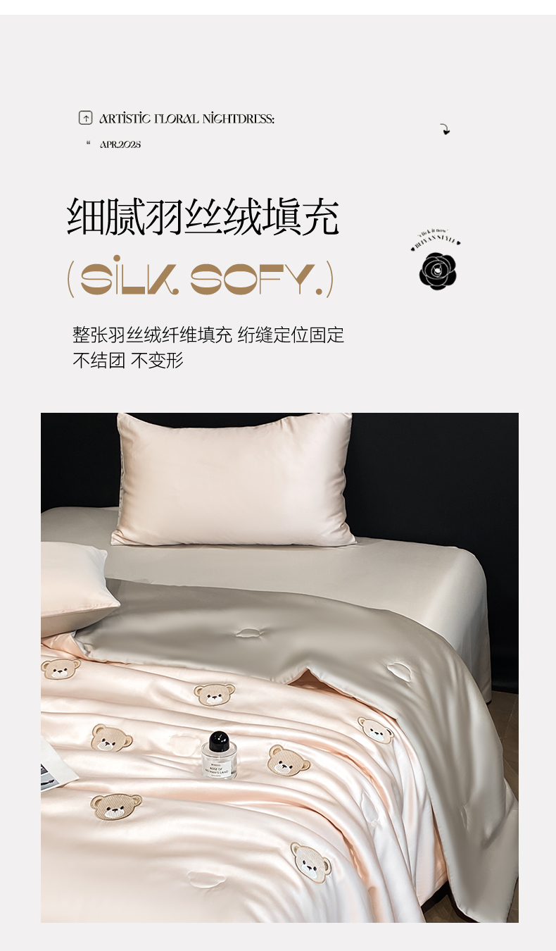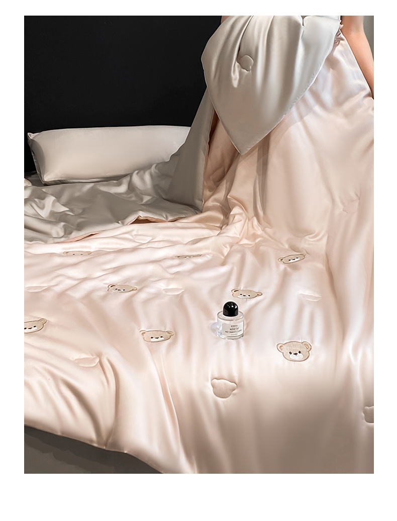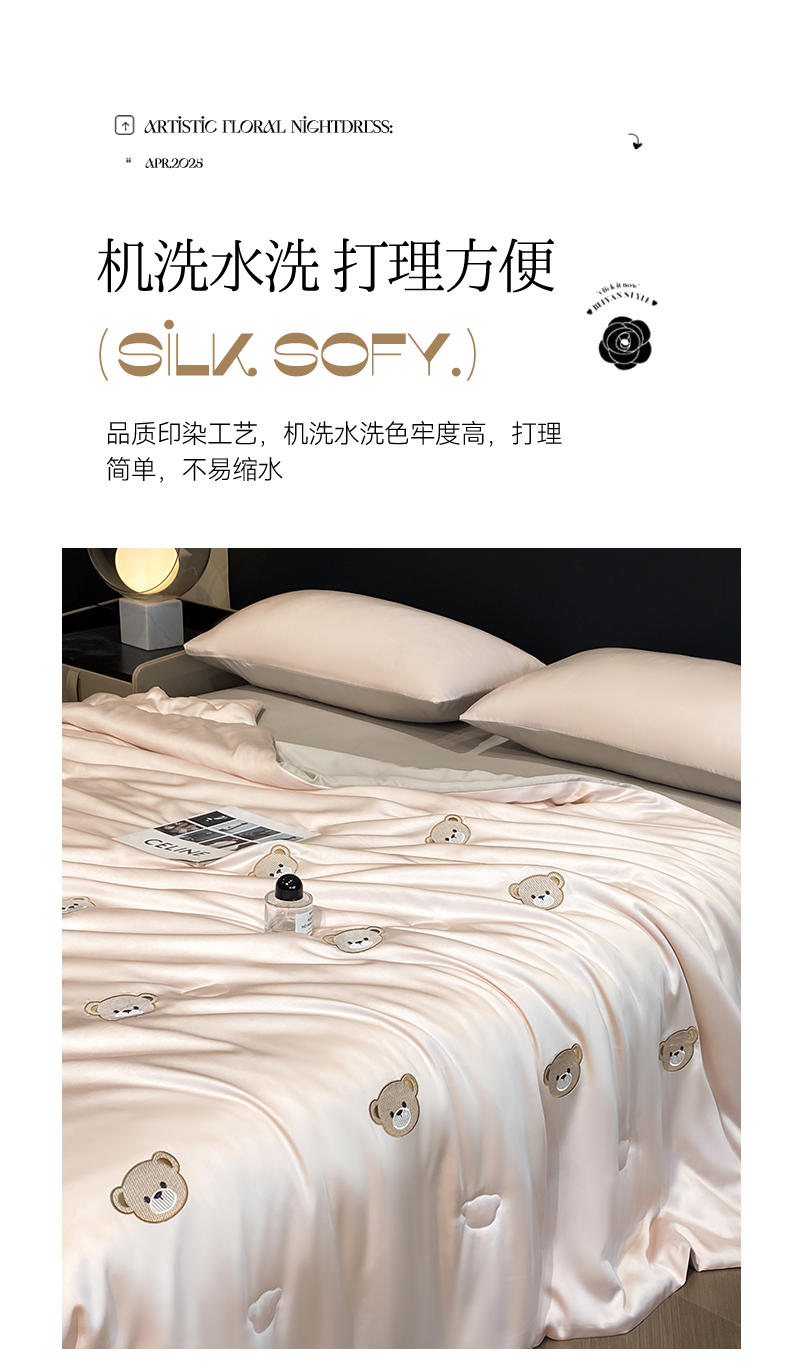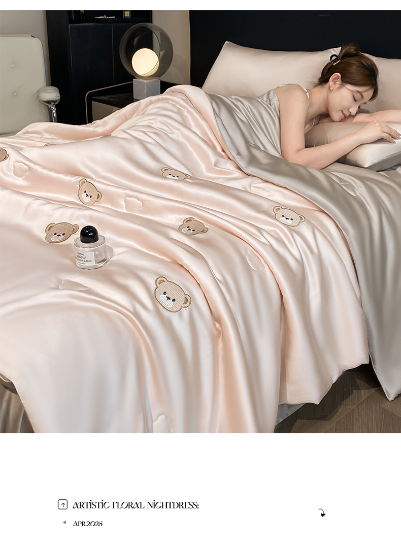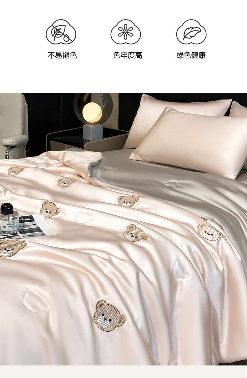 • 91家纺网 家纺一手货源 找家纺 无界 2026新款水洗真丝夏被-散点-贝尔 贝尔 素粉+冰川灰(小熊)