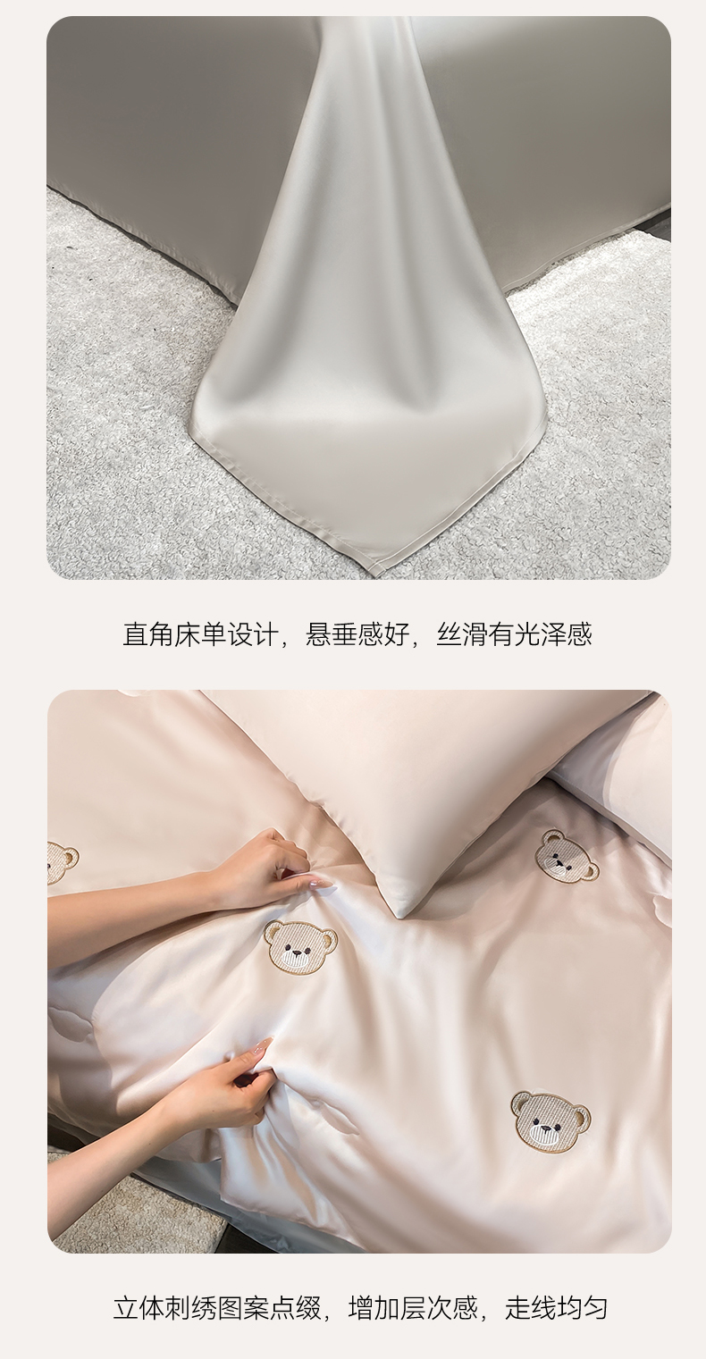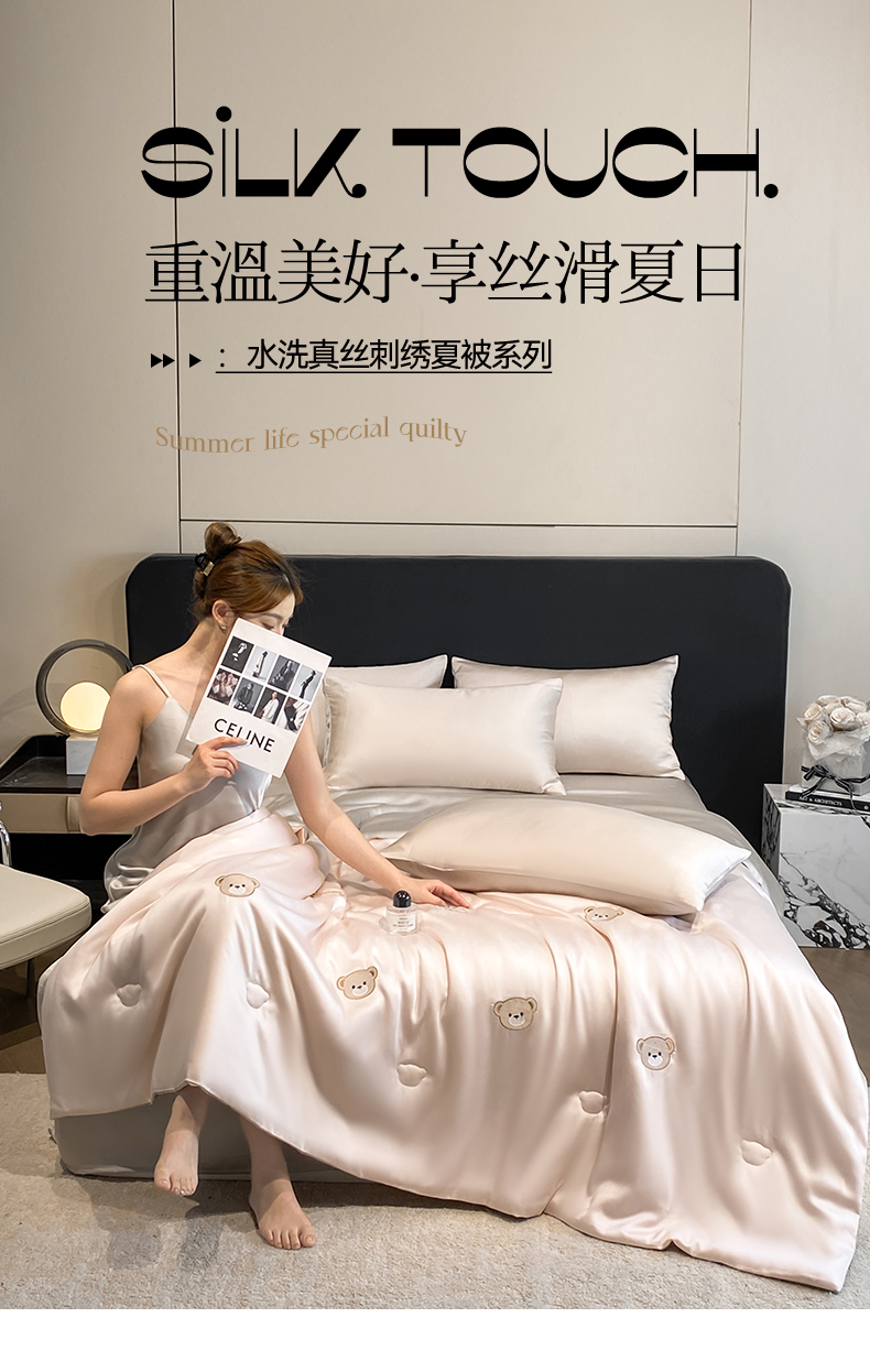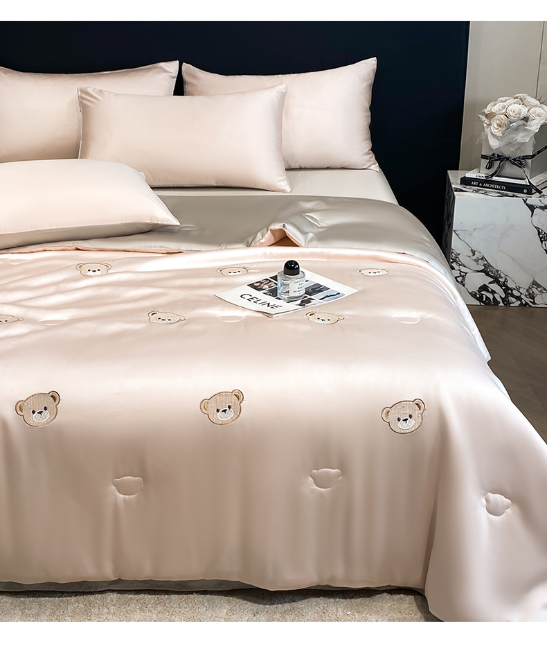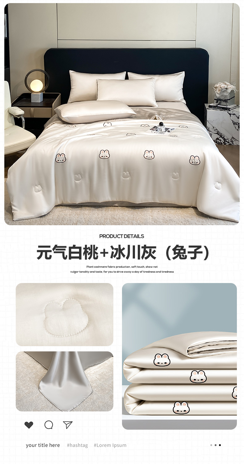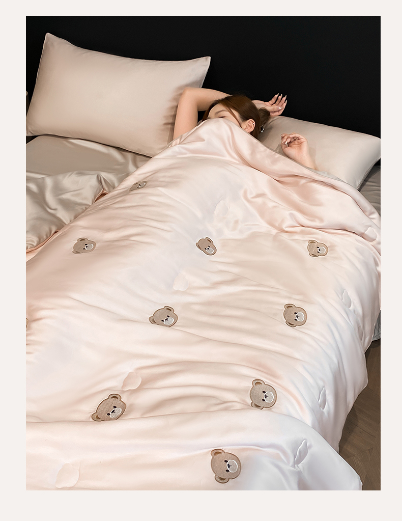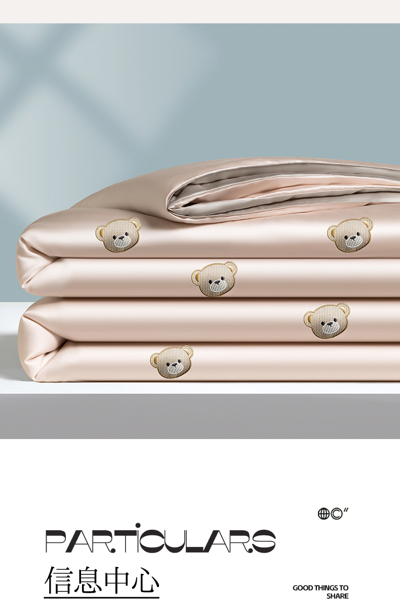 • 91家纺网 家纺一手货源 找家纺 无界 2026新款水洗真丝夏被-散点-贝尔 贝尔 素粉+冰川灰(小熊)