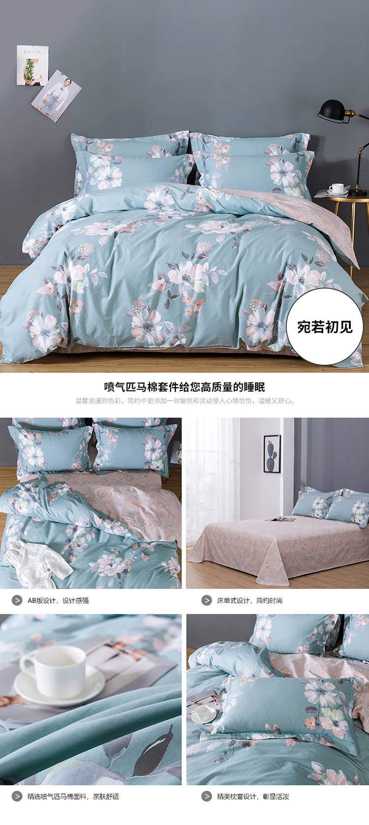 (总)沐白家居 2025新款全棉印花四件套,彩虹心,格雷尔,嘉宇格-咖,嘉宇格-蓝,绿植,落花,漫生活,米洛-灰,南枝-粉