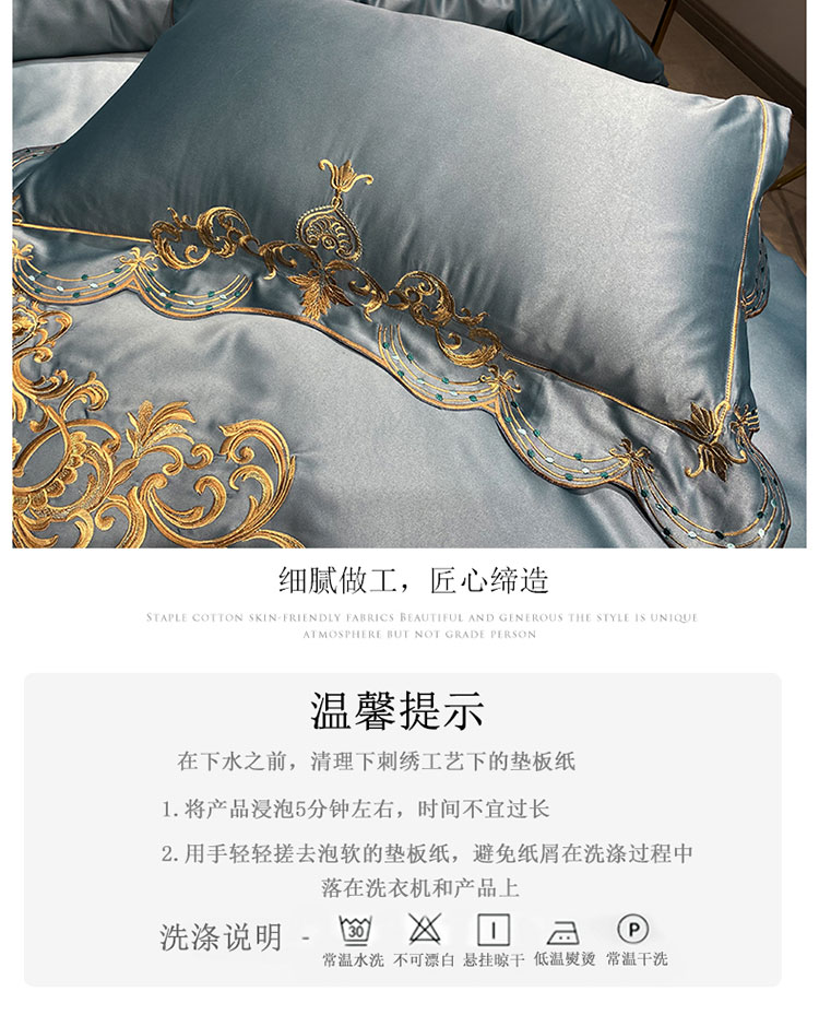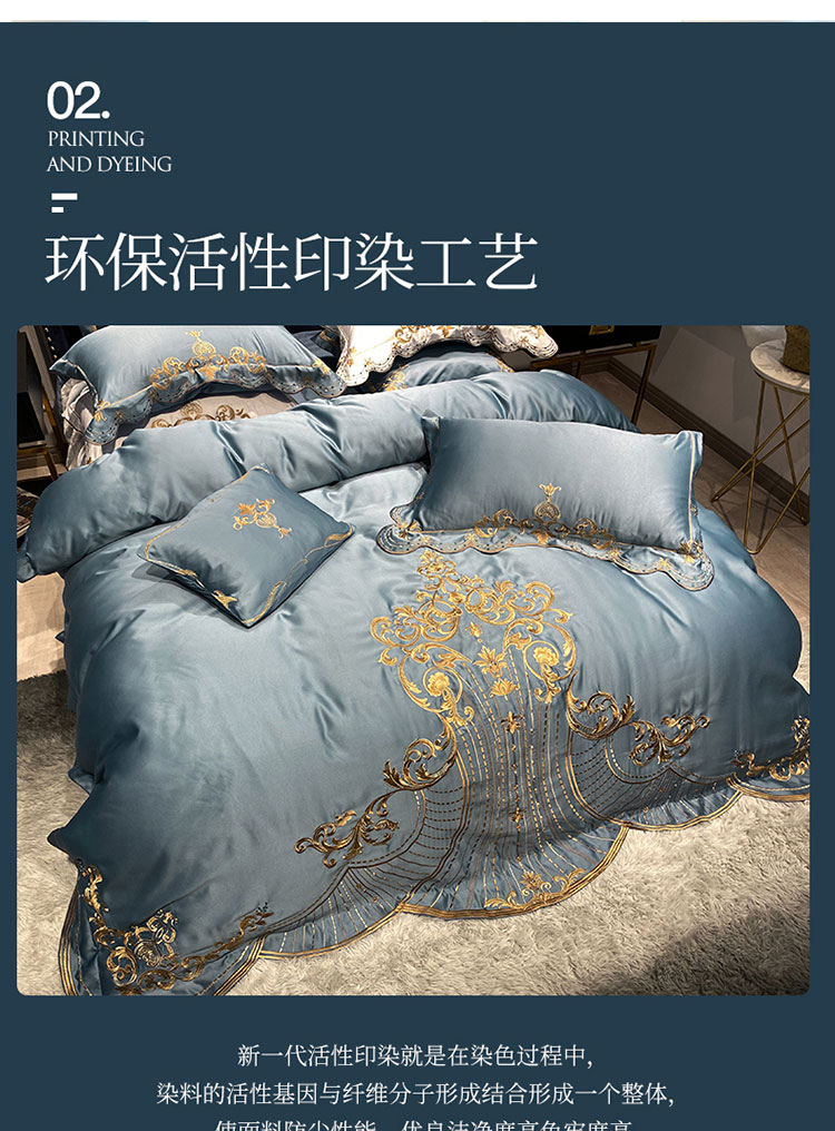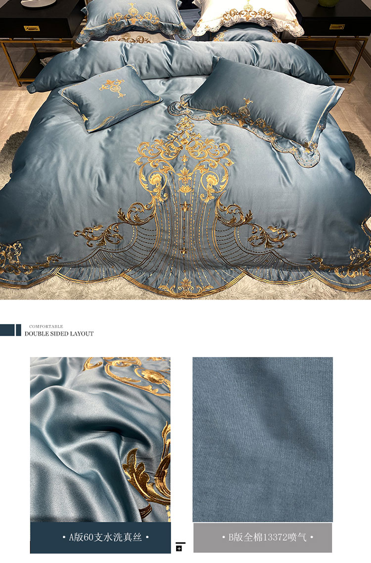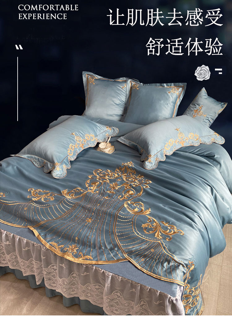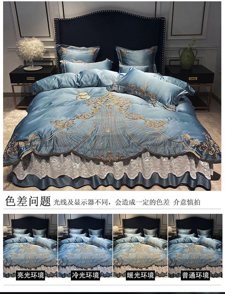 当前位置: 91家纺网 > 商品网购 > 床品套件 > 四件套 > 水洗真丝四件套 > 品家居 2021新款世嘉系列刺绣床裙款四件套 蓝灰