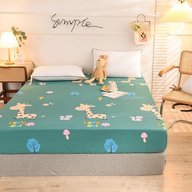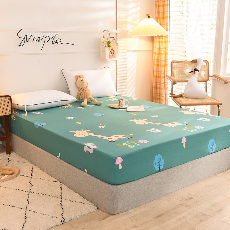 甜之梦 新款12868全棉印花系列单床笠(可接缺角异型) 小鹿精灵绿