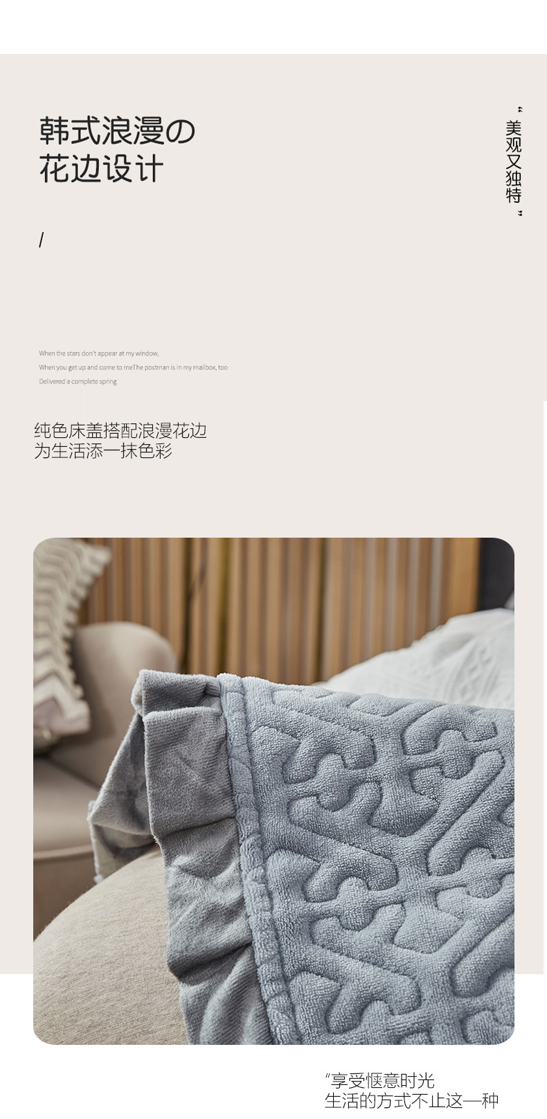 • 91家纺网 家纺一手货源 找家纺 佳梦家纺 牛奶绒纯色花边床盖绗缝夹棉绒毯三件套榻榻米席梦思床垫子 浅灰