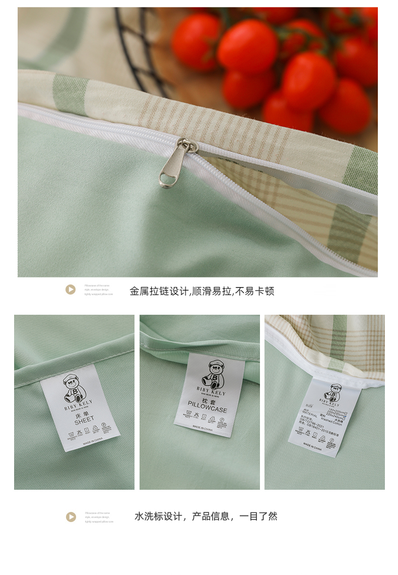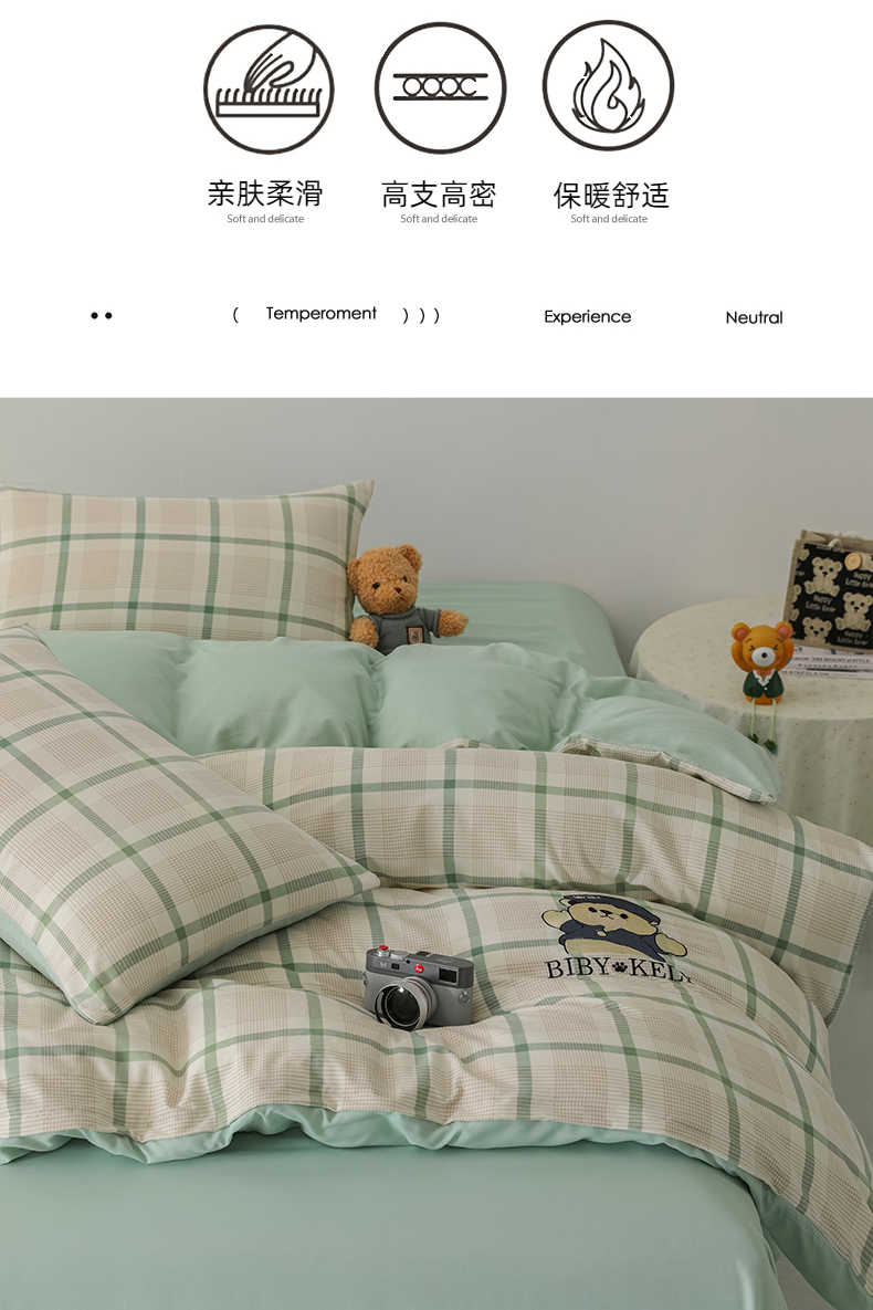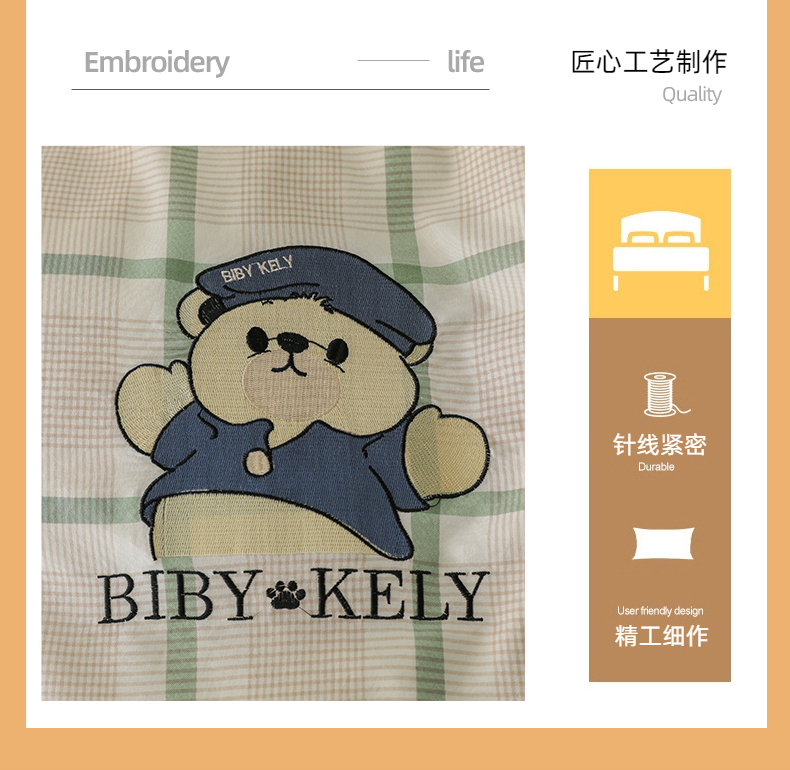 商品名称:潮邦创意家居 2025新款春夏亲肤水洗棉刺绣四件套-贝恩熊 贝恩熊-英伦绿