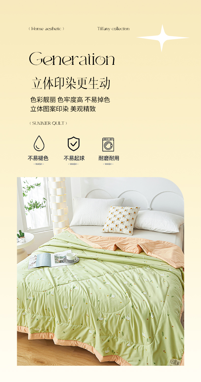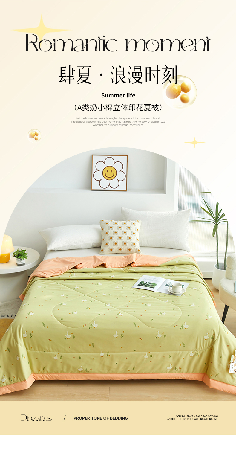 (总)欧朵家纺 2025新款A类奶小棉立体印花夏被,粉黛,苹果派,小鹅乐园,幸运花,萌猫,银杏橙