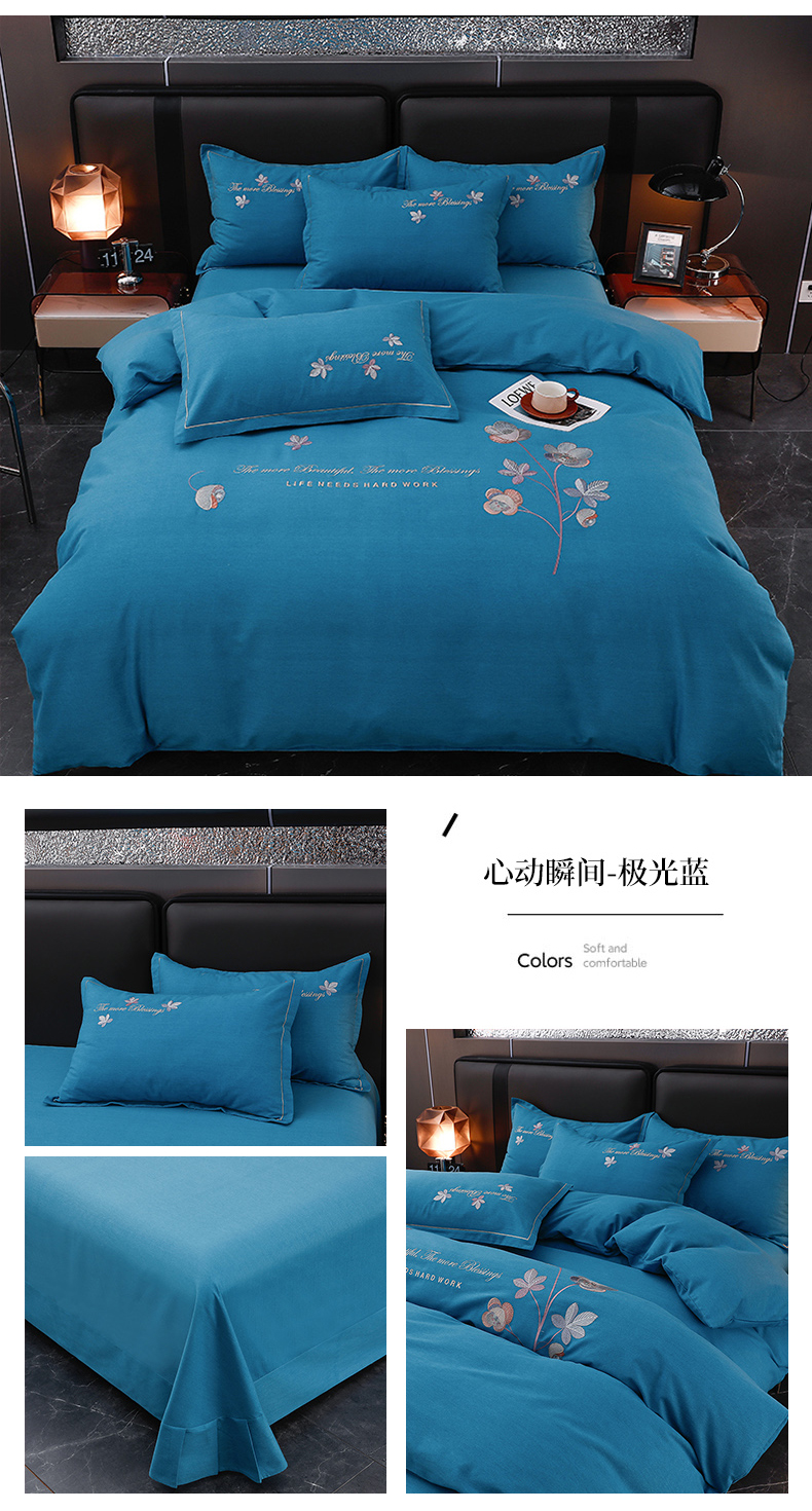 润淳家居 2025新款全棉磨毛刺绣四件套 心动瞬间 极光蓝