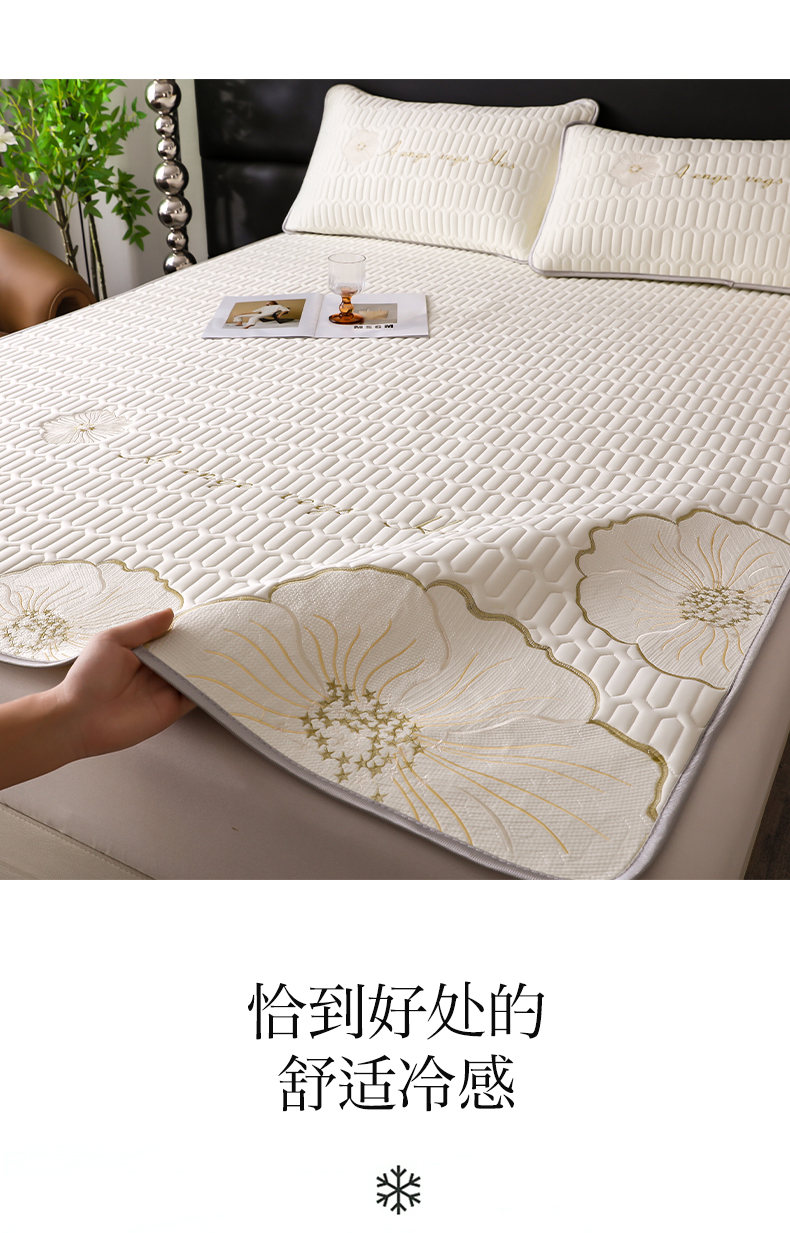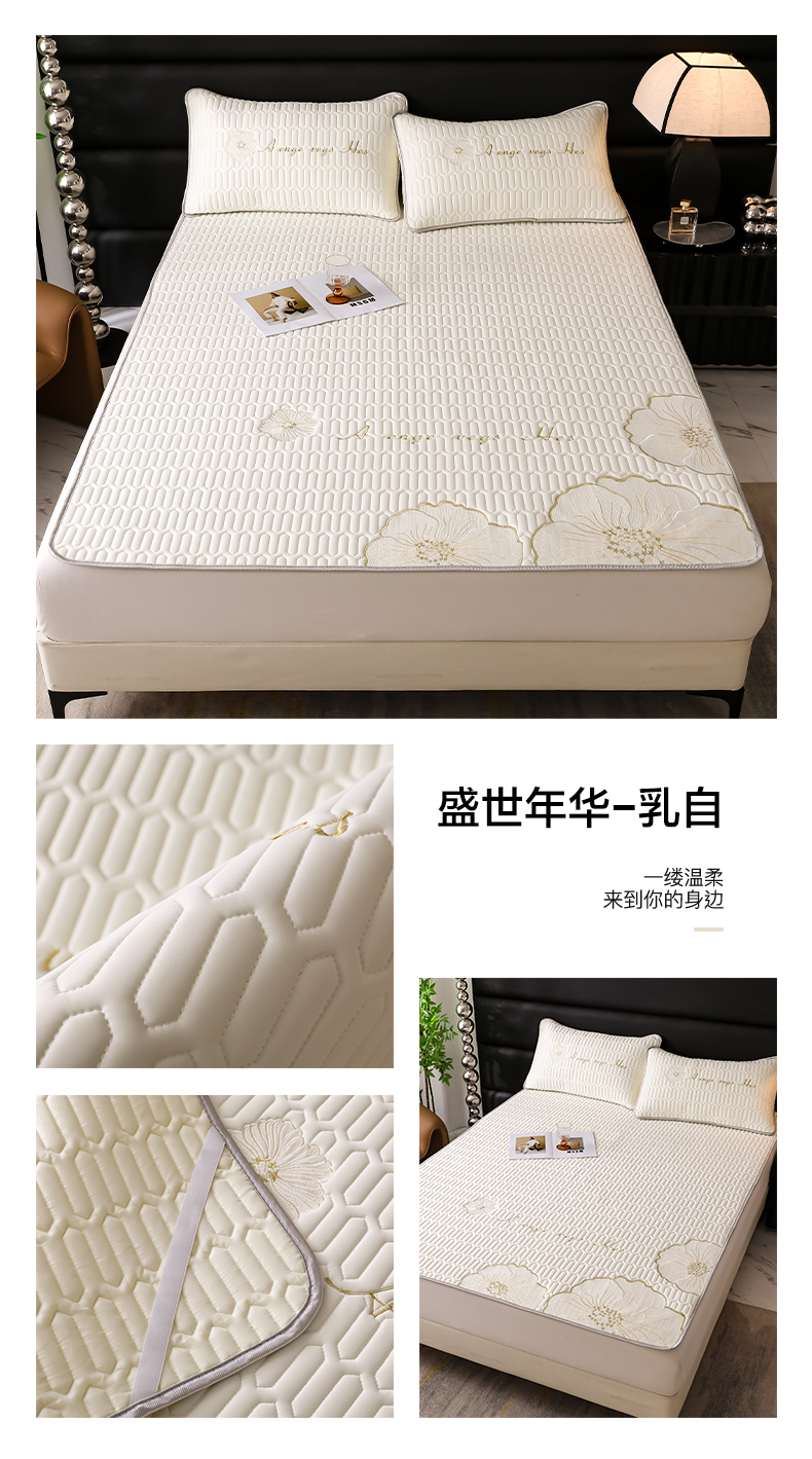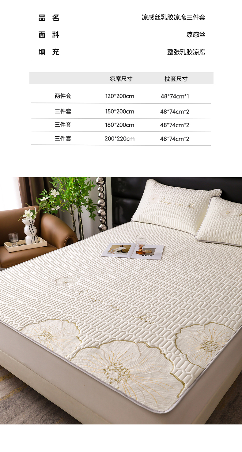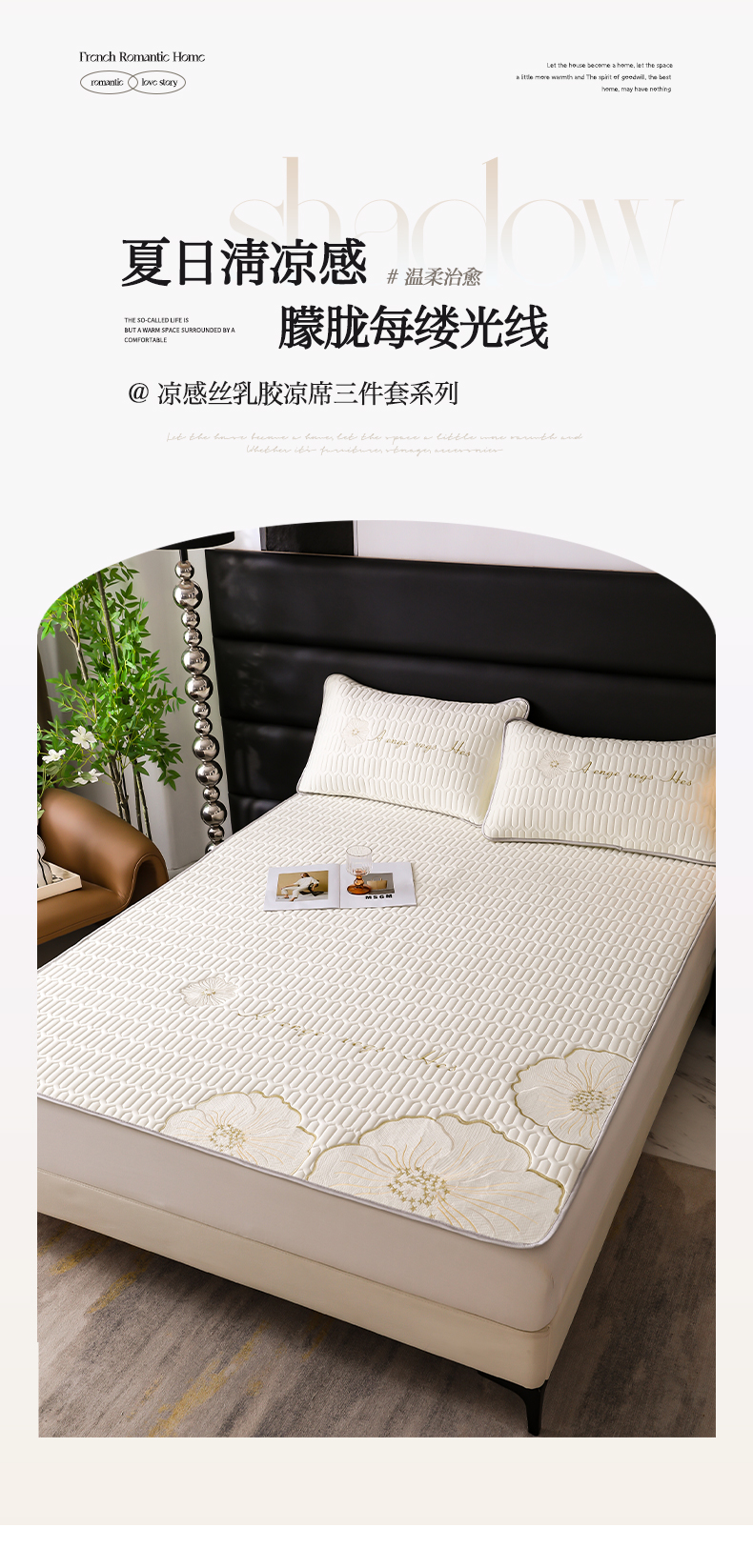 你好美丽 2025新款凉感丝绣花0.6乳胶凉席三件套-盛世年华 乳白