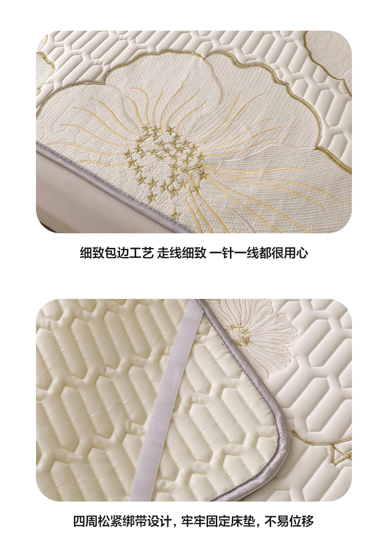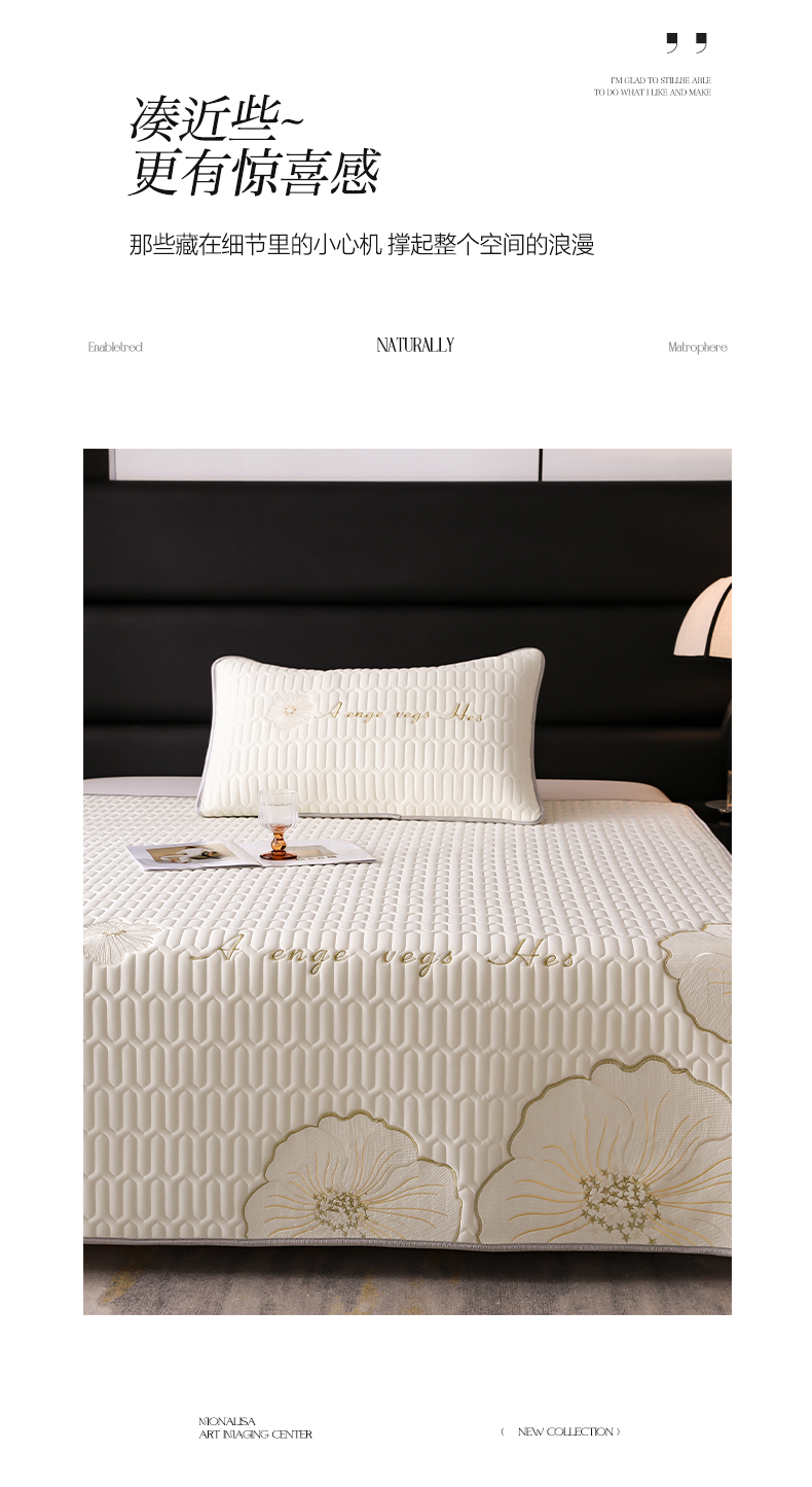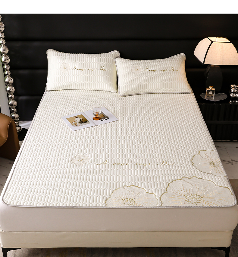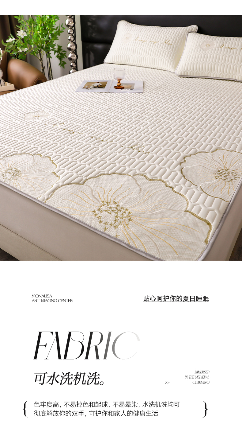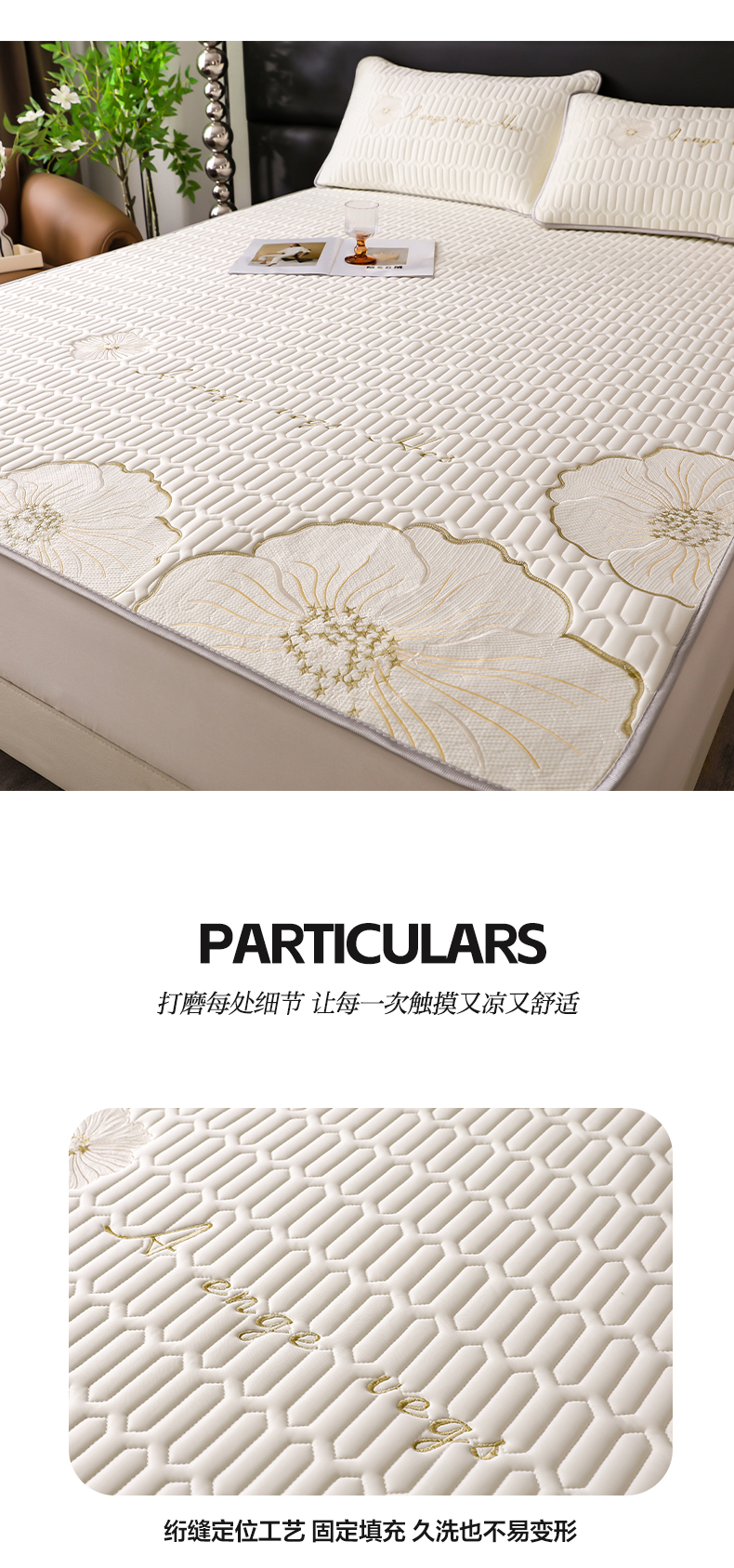 你好美丽 2025新款凉感丝绣花0.6乳胶凉席三件套-盛世年华 乳白