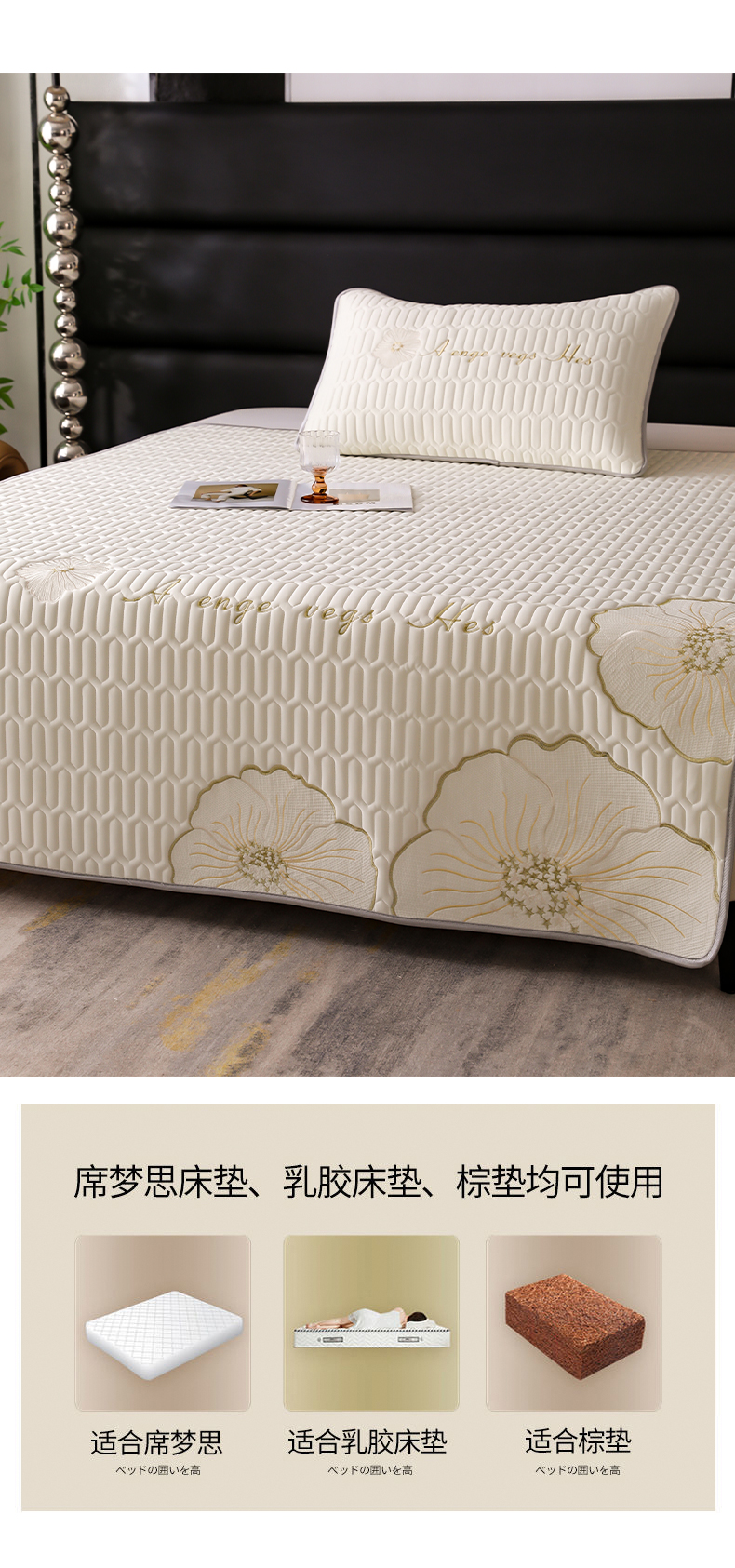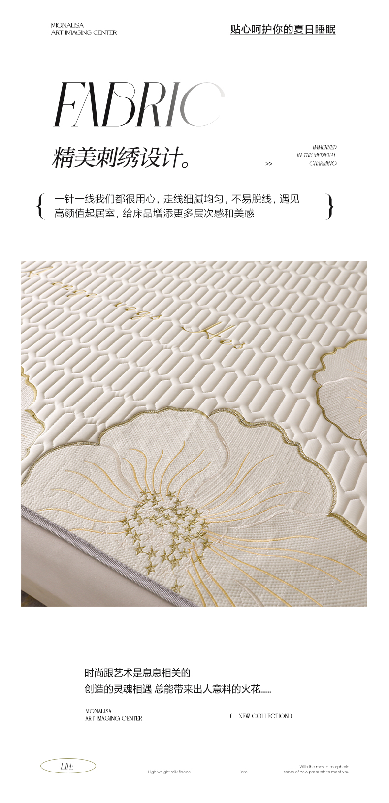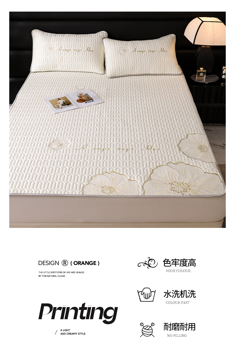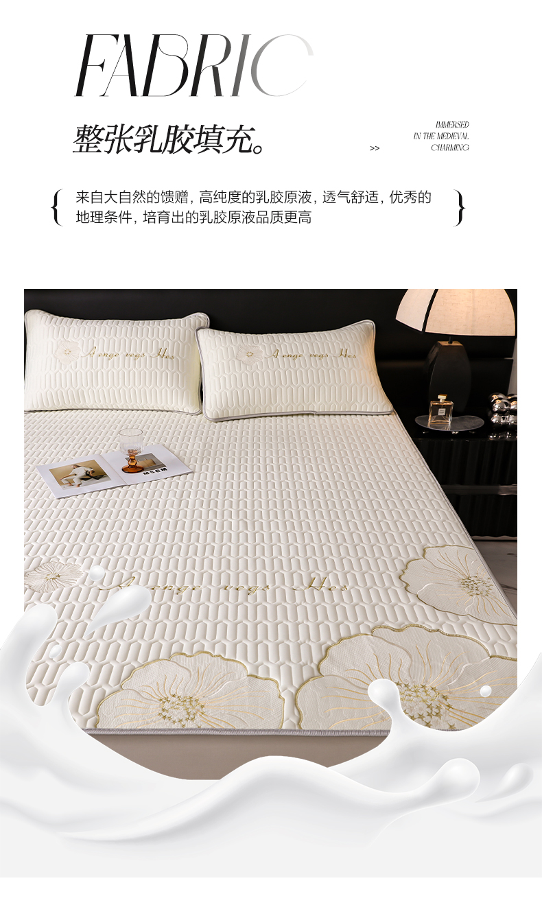 你好美丽 2025新款凉感丝绣花0.6乳胶凉席三件套-盛世年华 乳白