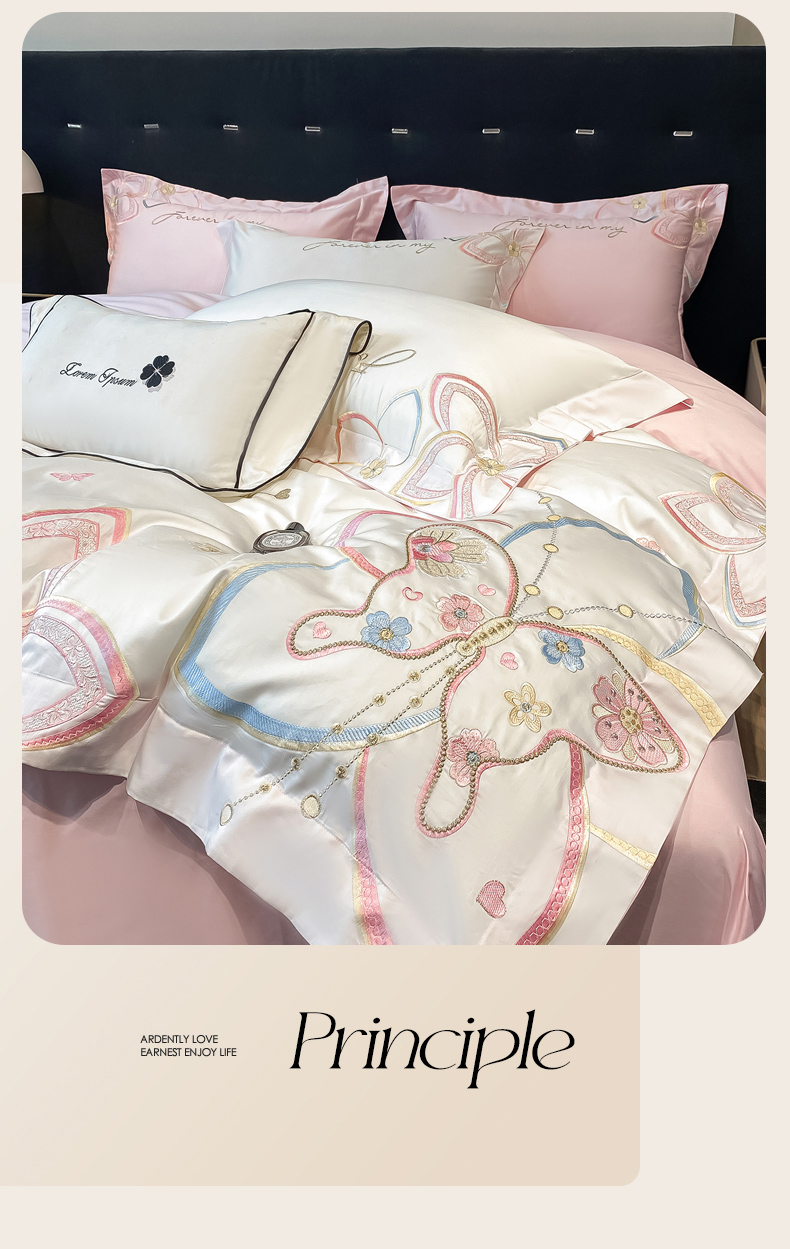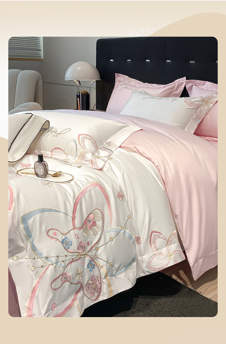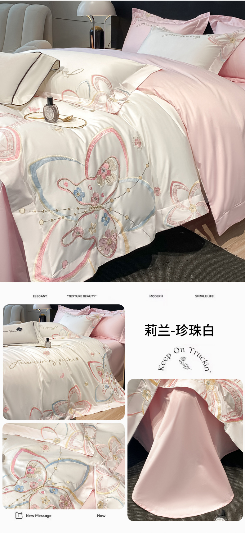 星蕴家纺 2024新款喷气全工艺纯棉四件套-莉兰 莉兰白拼粉