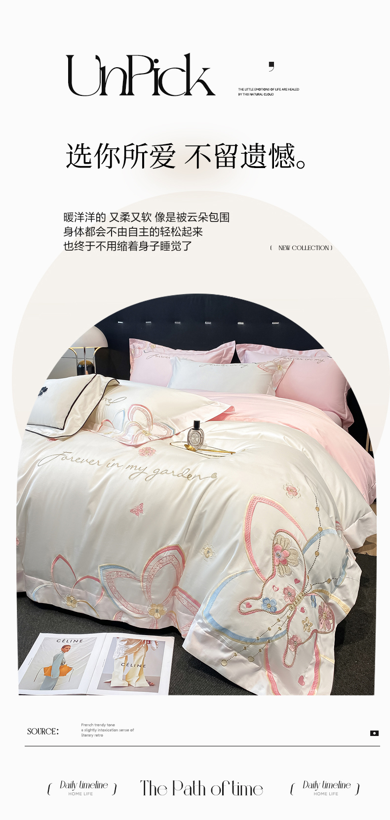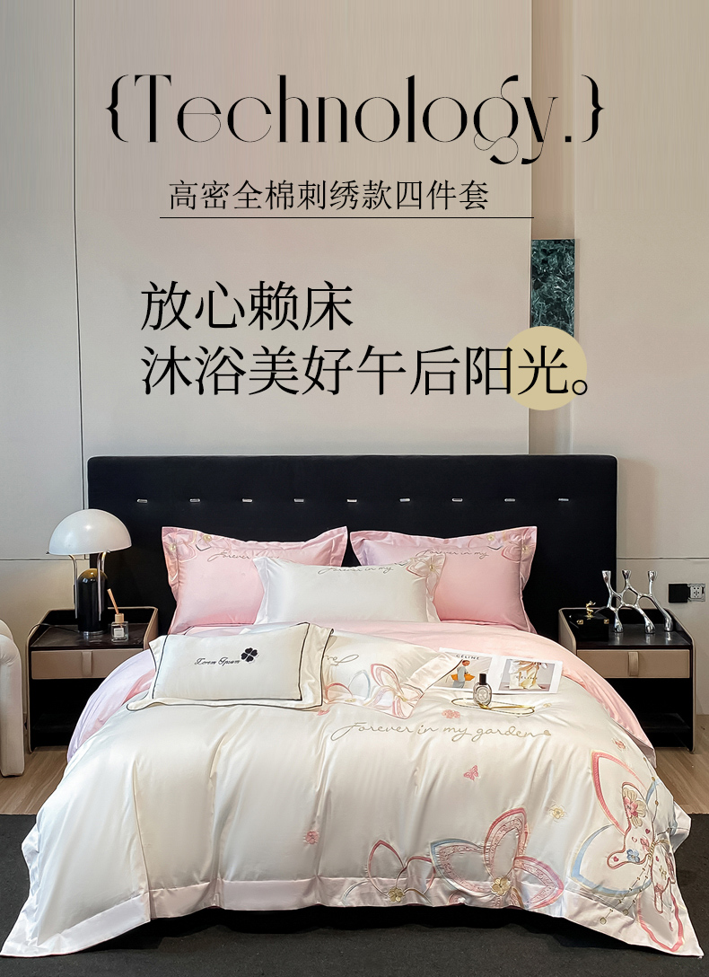(总)星蕴家纺 2024新款A类新疆全棉刺绣四件套,高级灰,奶昔白,千禧粉,浅香槟