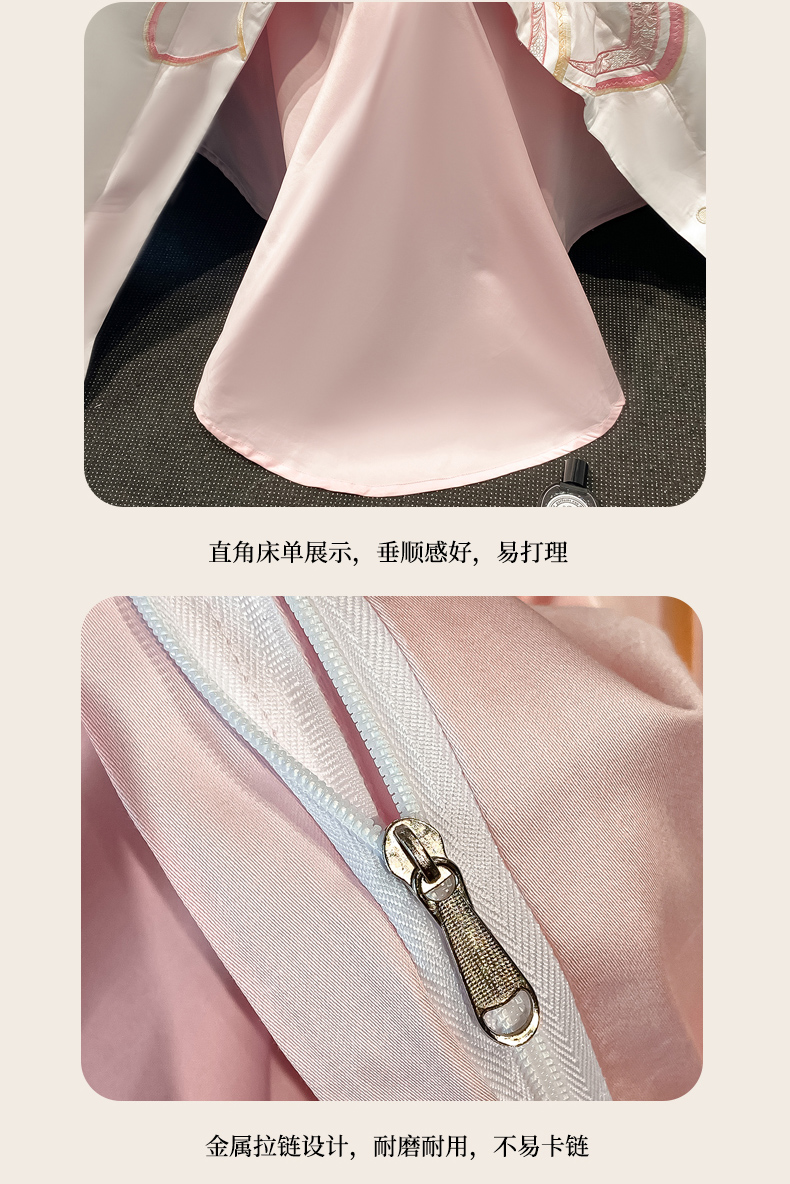 商品名称:星蕴家纺 2024新款喷气全工艺纯棉四件套-莉兰 莉兰白拼粉