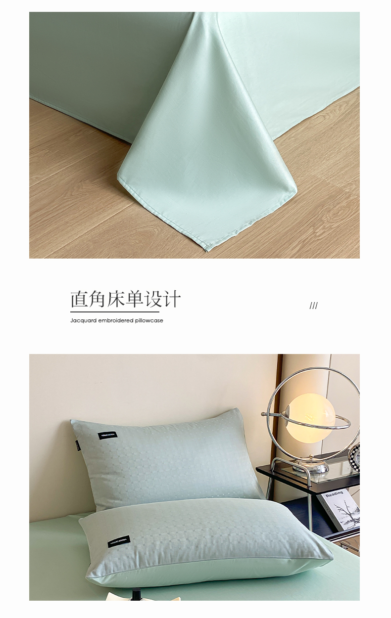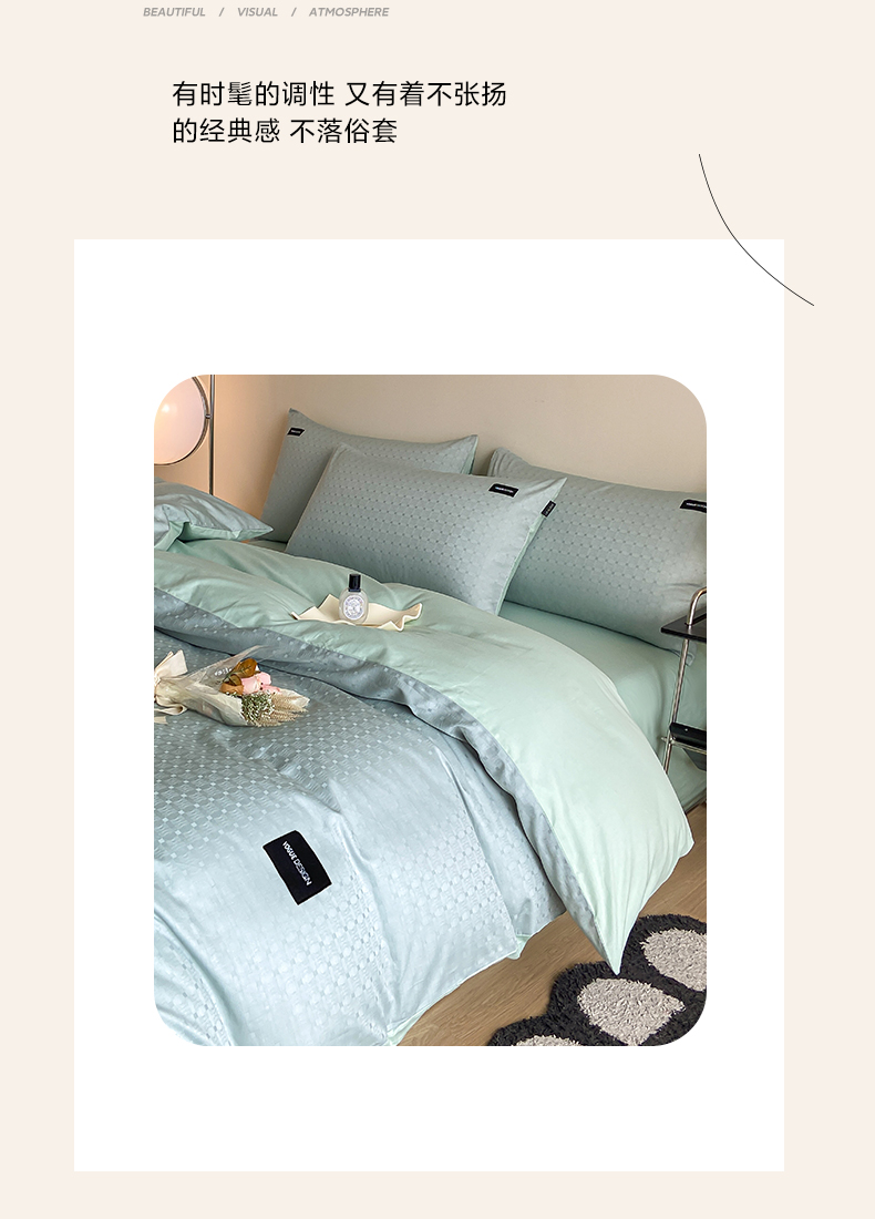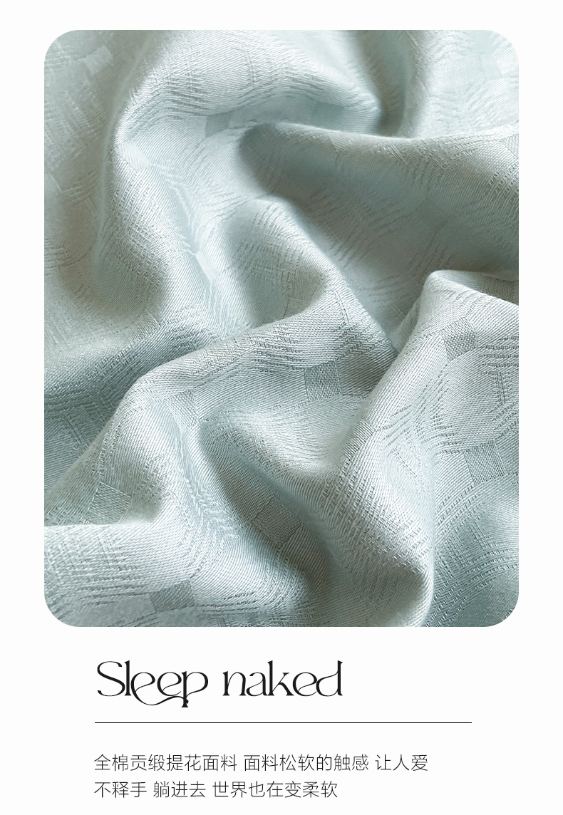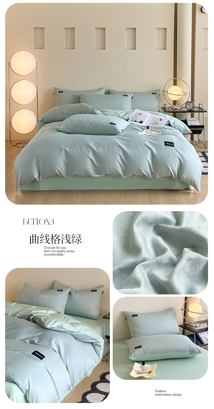 当前位置: 91家纺网 > 商品网购 > 床品套件 > 四件套 > 全棉普通四件套 > 莱登卡奴 2024新款全棉原棉贡缎提花贴标款系列四件套 曲线格浅绿